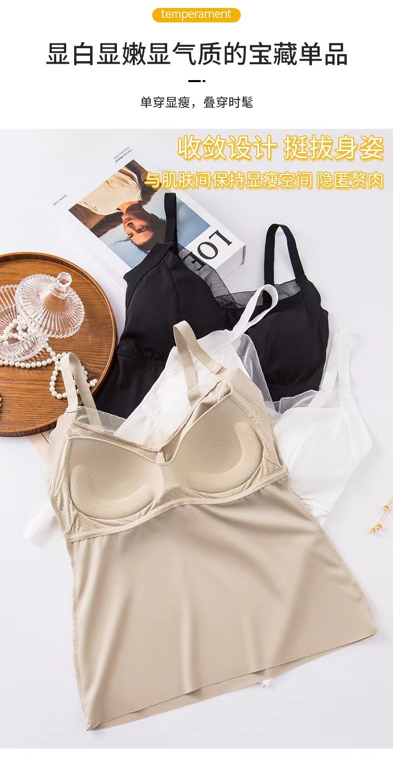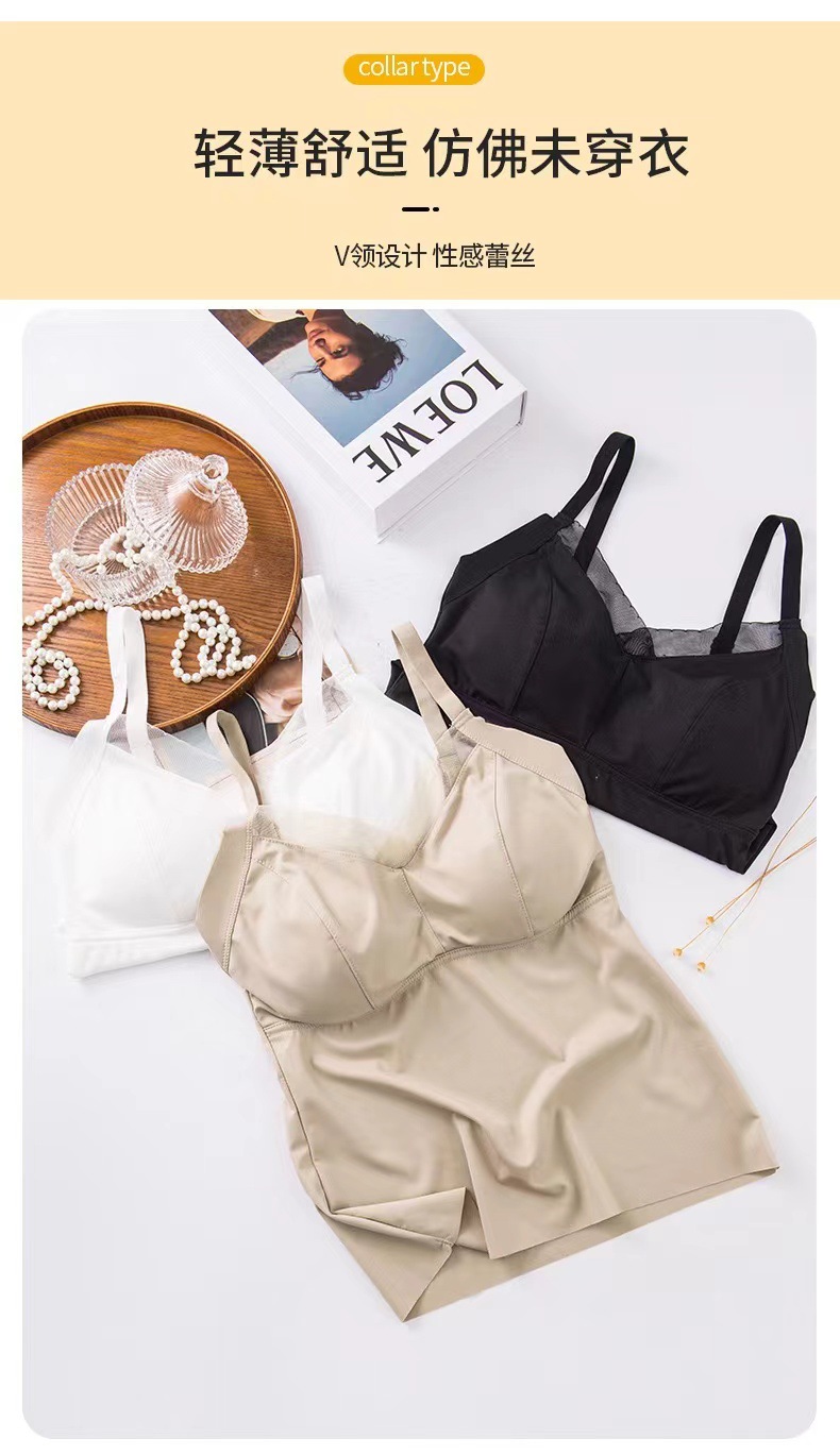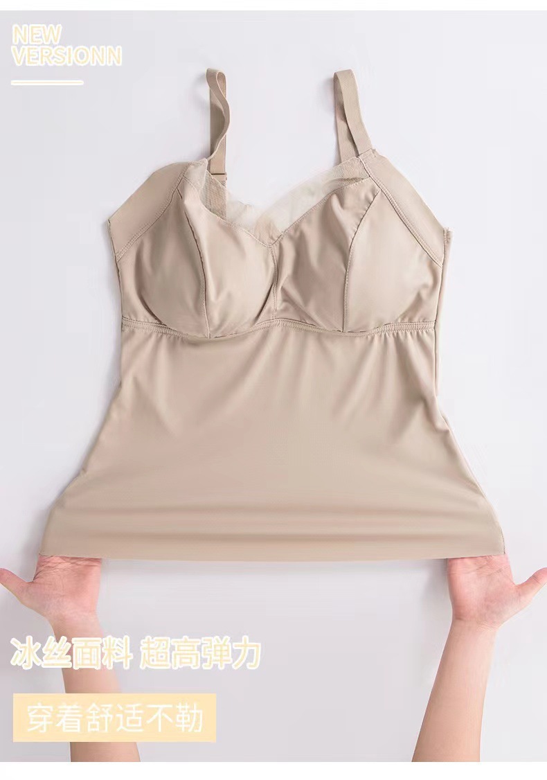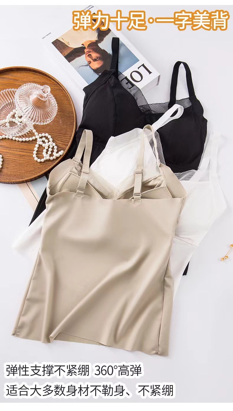 8809 슬링 백 라텍스 가슴 패드 원피스 조끼 안티 노출 조절 어깨 끈은 여성을위한 아이스 실크 속옷을 모았습니다.스토어 가기
