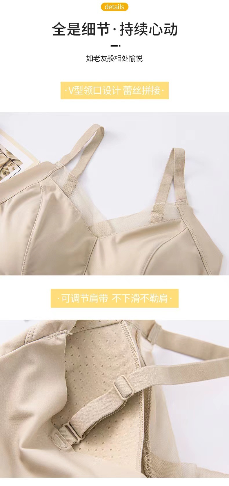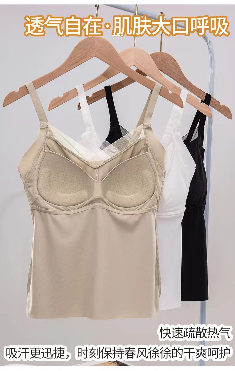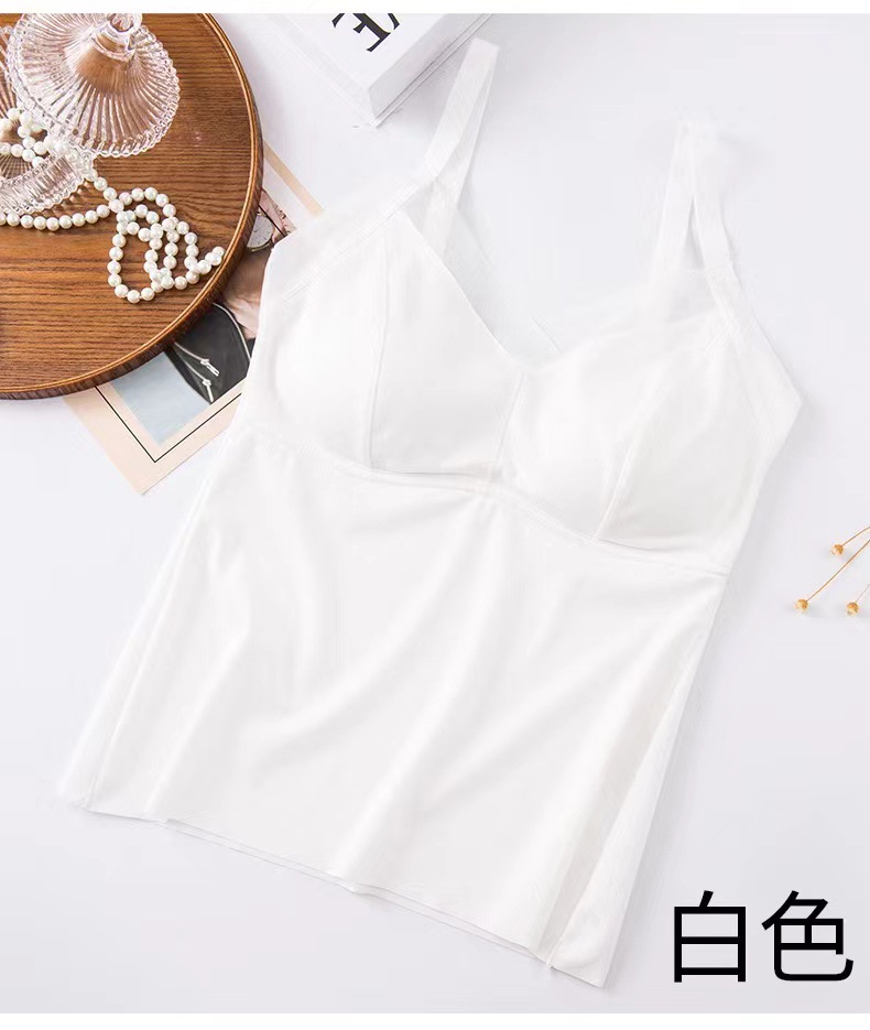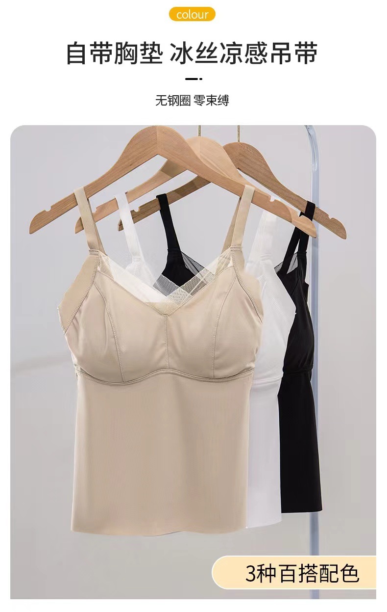 8809 슬링 백 라텍스 가슴 패드 원피스 조끼 안티 노출 조절 어깨 끈은 여성을위한 아이스 실크 속옷을 모았습니다.스토어 가기