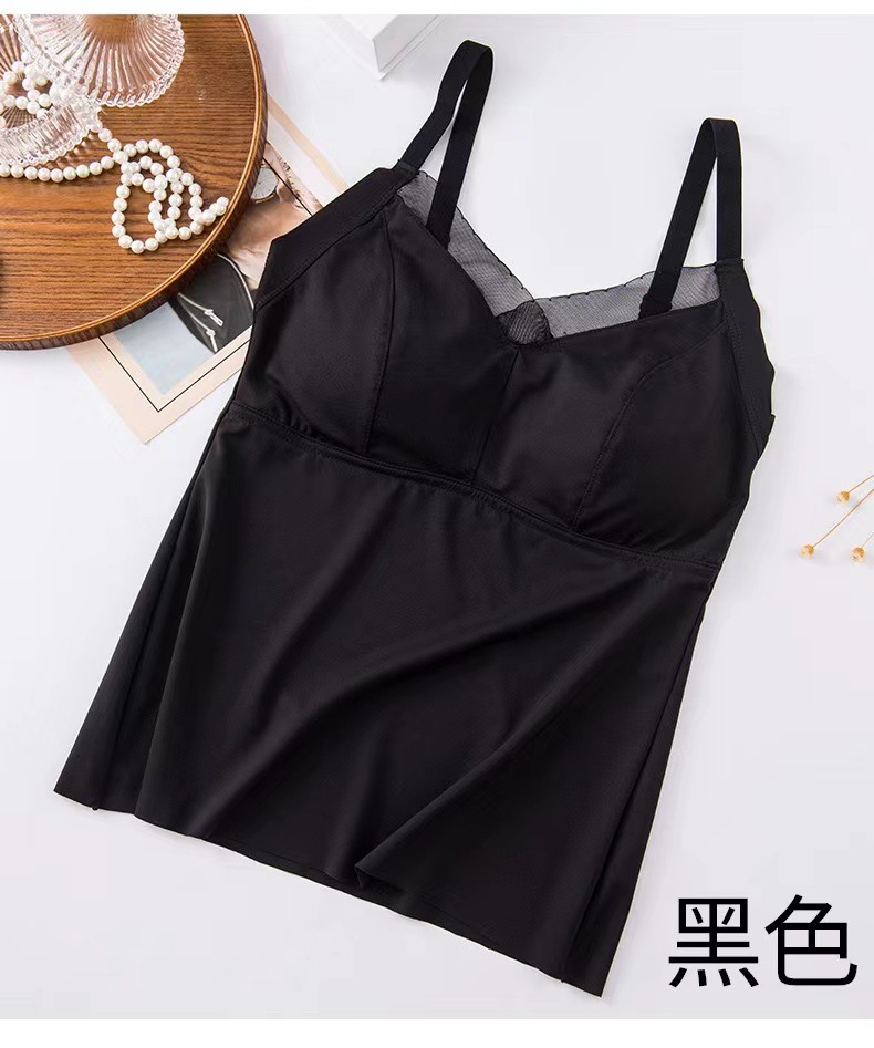 8809 슬링 백 라텍스 가슴 패드 원피스 조끼 안티 노출 조절 어깨 끈은 여성을위한 아이스 실크 속옷을 모았습니다.