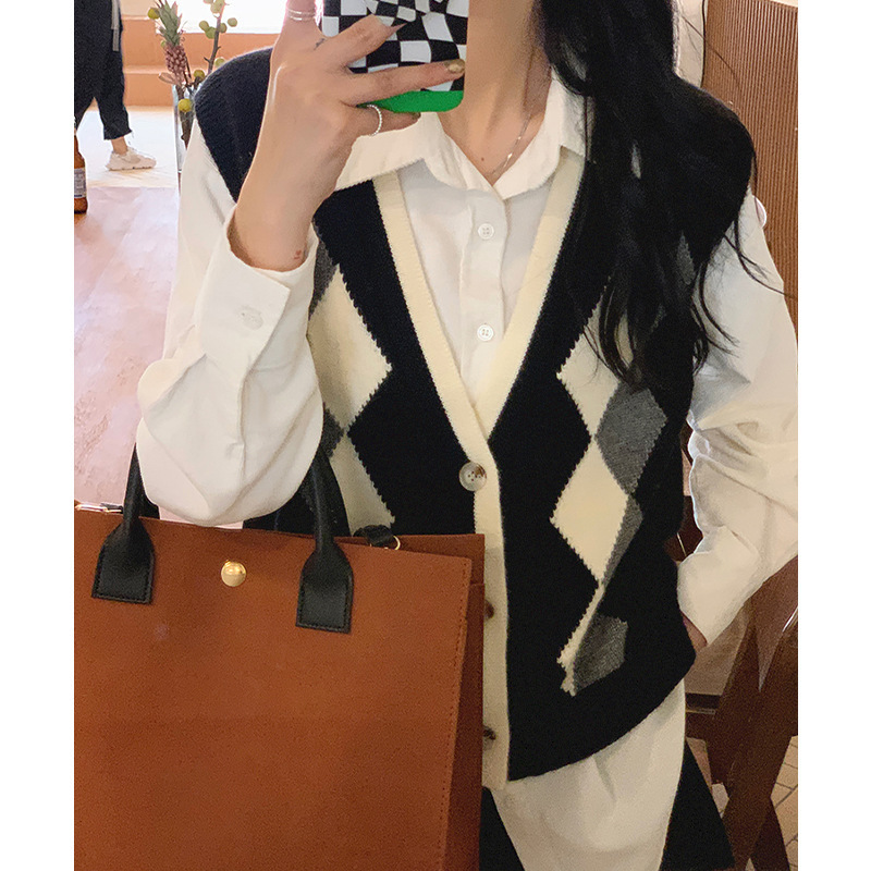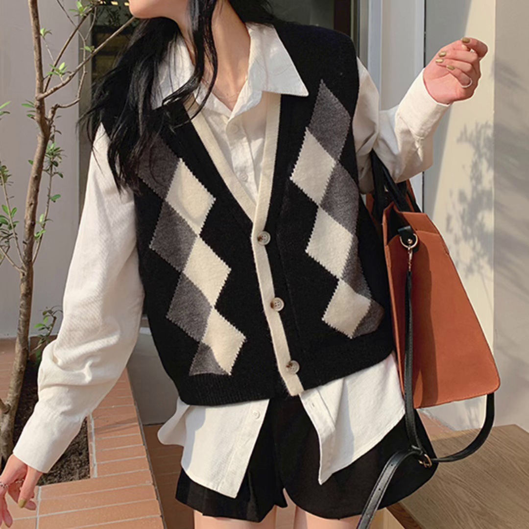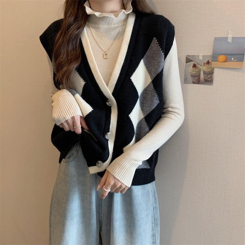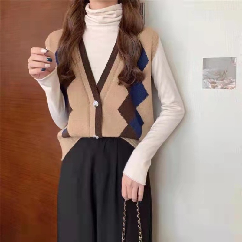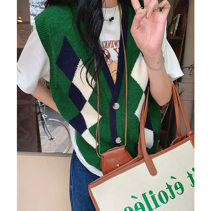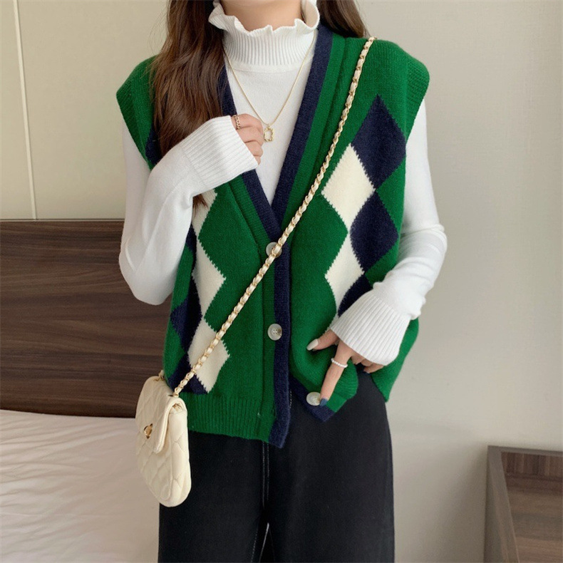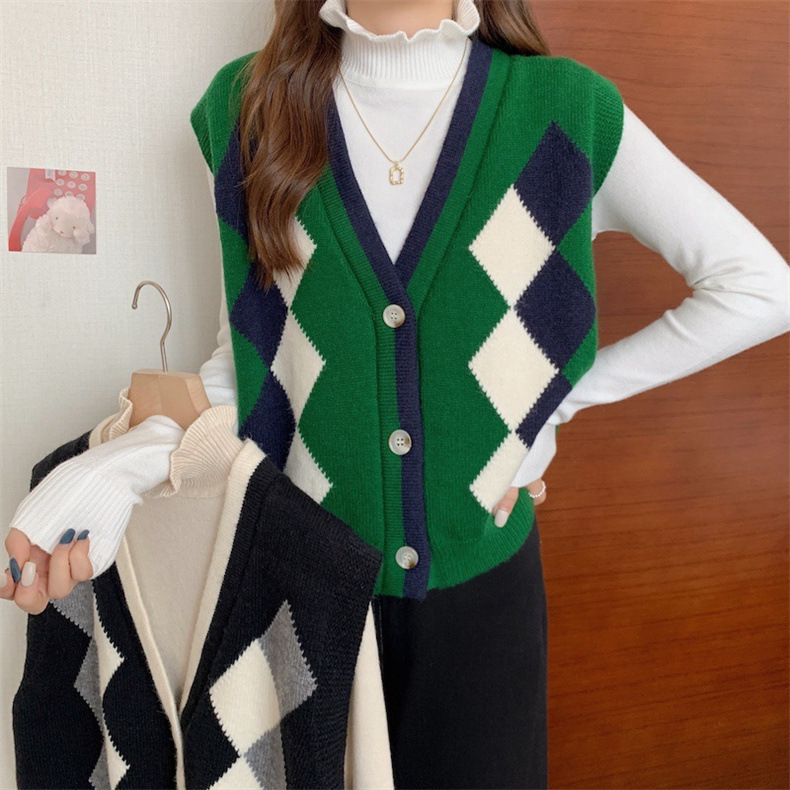 한국식 봄과 가을 겉옷 고급 니트 조끼 조끼 겉옷 스웨터 샤넬 스타일 조끼 코트 여성용스토어 가기