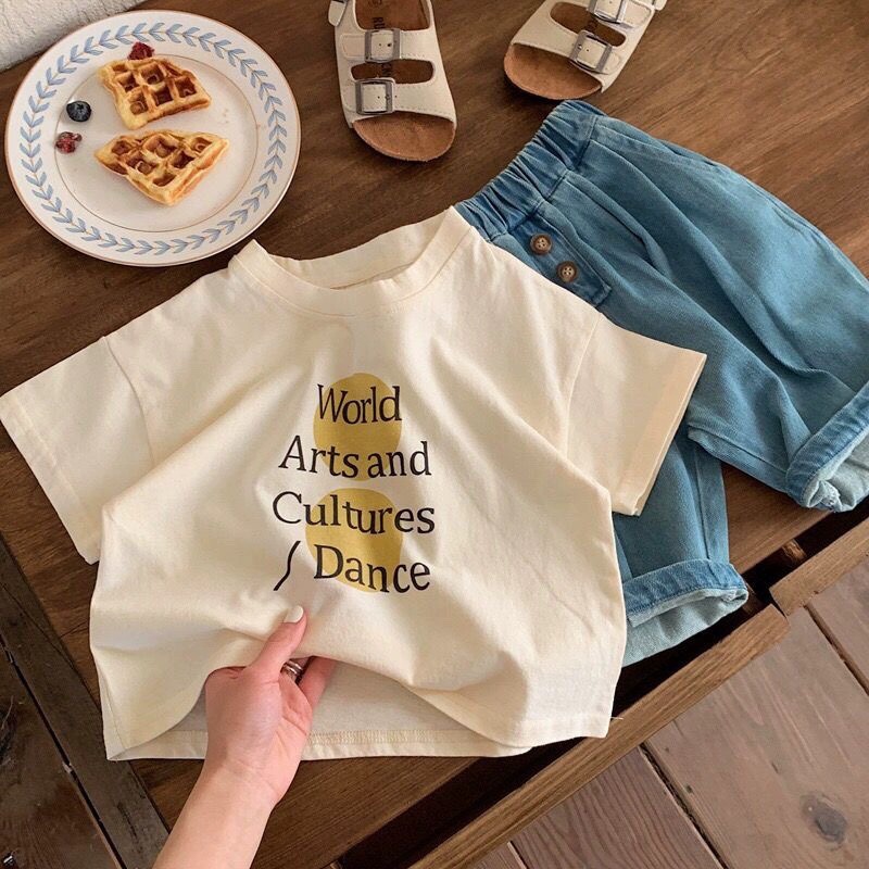 순수 코튼 어린이 반팔 티셔츠 여름 2025 소년과 소녀를위한 새로운 귀여운 아기 만화 캐주얼상의스토어 가기