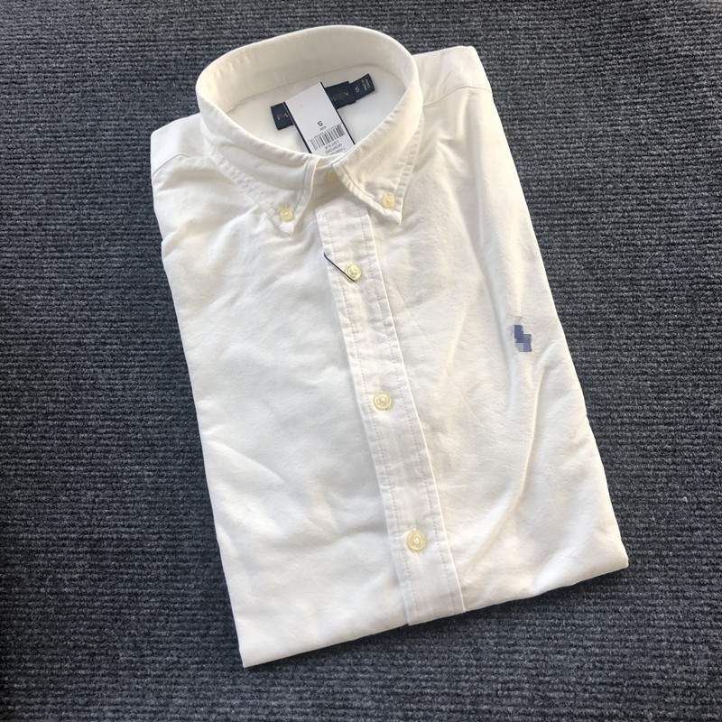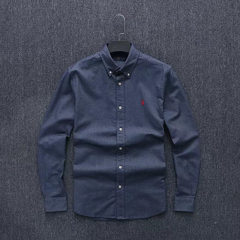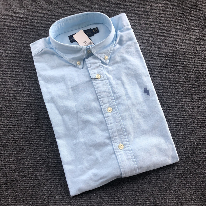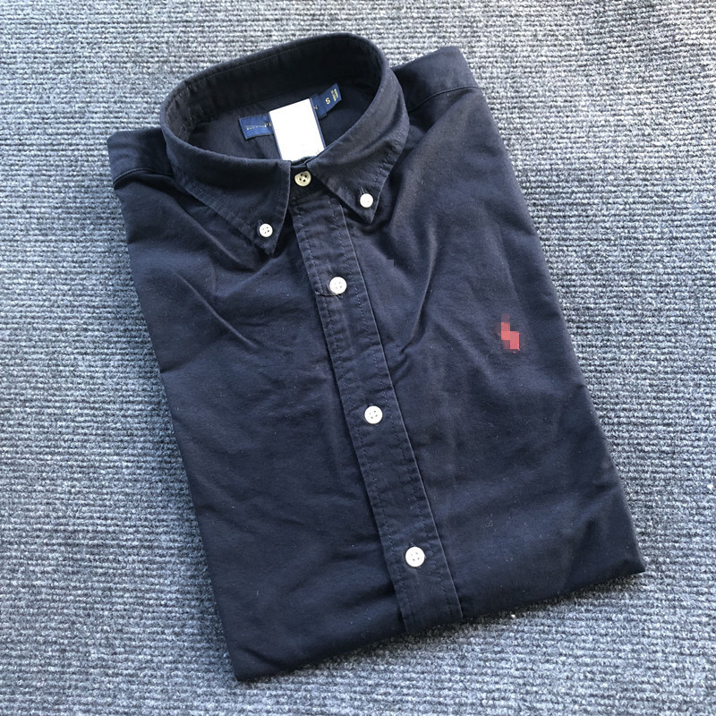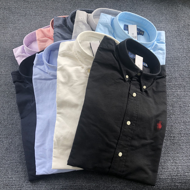 새로운 클래식 셔츠 랄프 남성 비즈니스 캐주얼 퓨어 코튼 옥스포드 솔리드 컬러 작은 라벨 수 놓은 긴 소매 셔츠스토어 가기