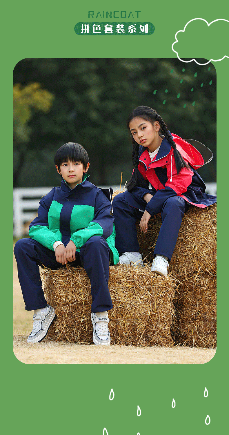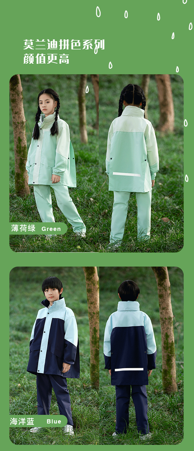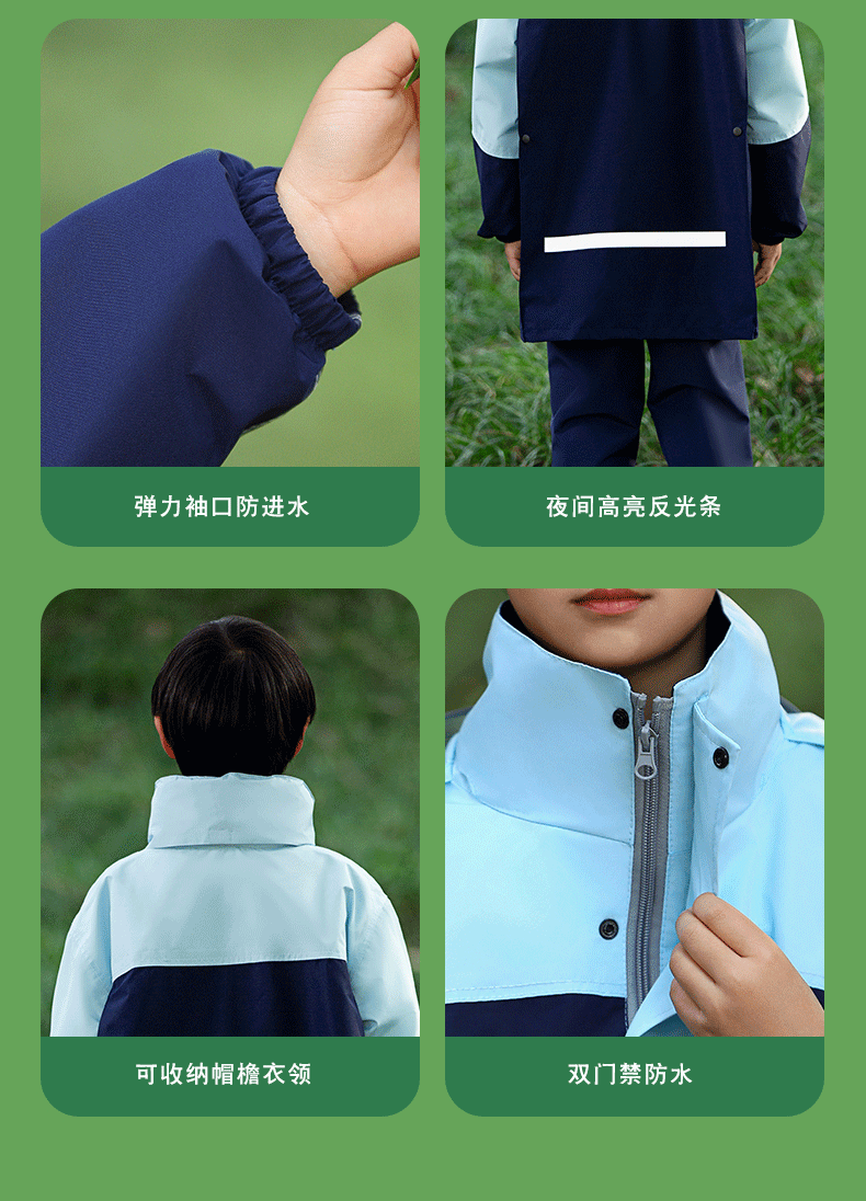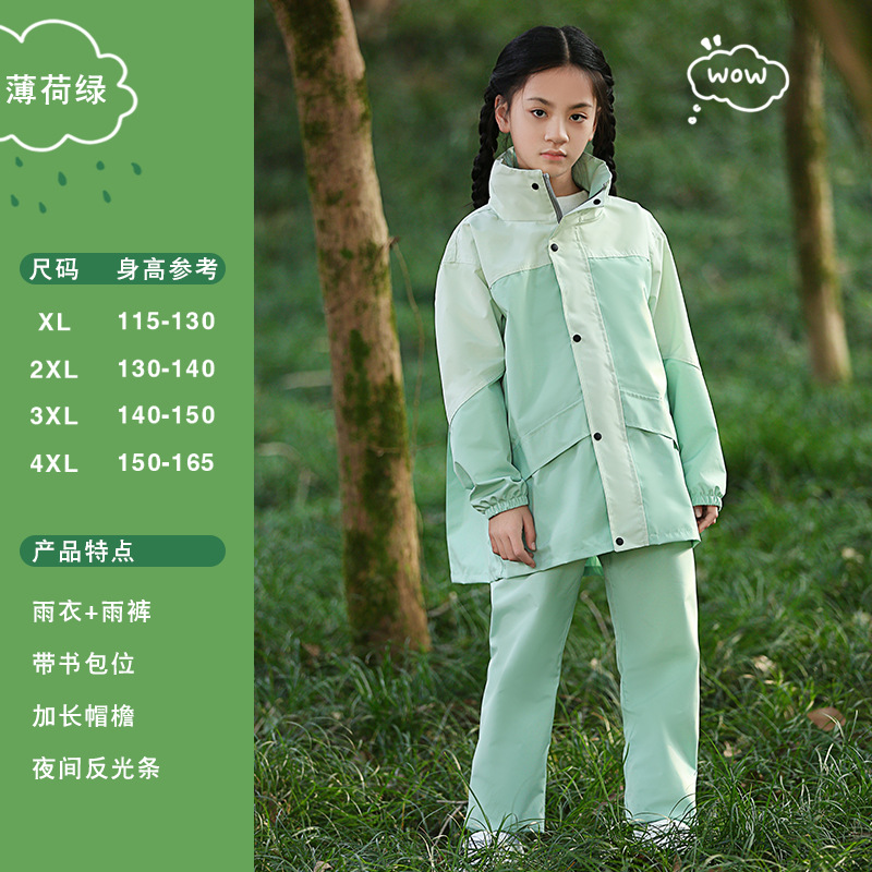• 민트 콩 그린-어린이 2075 모델 [비옷 비 바지 + 큰 책가방 위치 + 큰 테두리]]