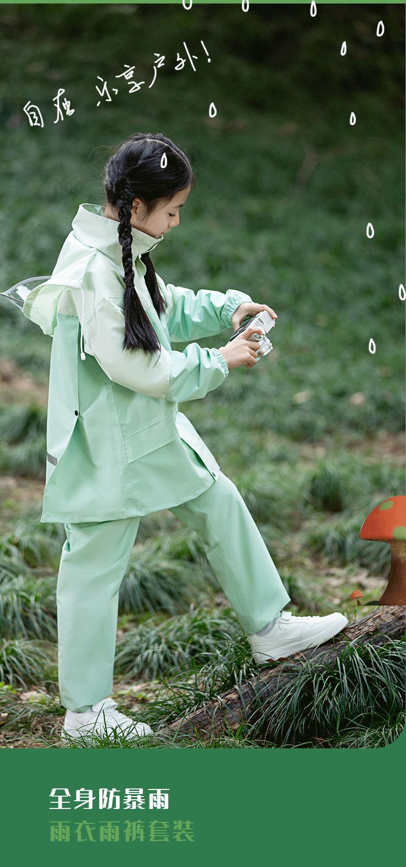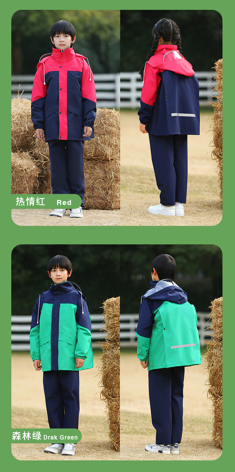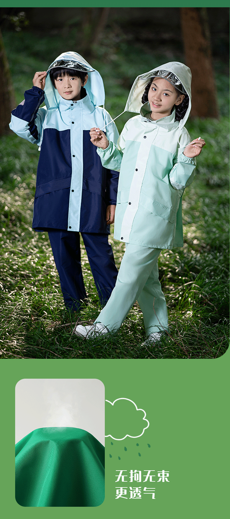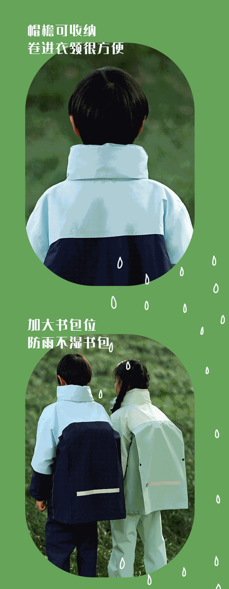 • 민트 콩 그린-어린이 2075 모델 [비옷 비 바지 + 큰 책가방 위치 + 큰 테두리]]