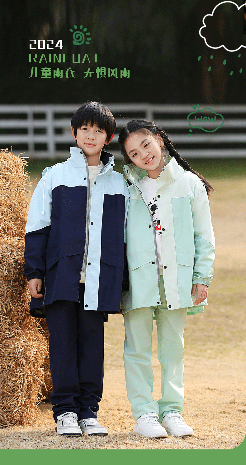 어린이 비옷 비 바지 세트 방수 전신 초등 및 중등 학교 학생 학교 소년 소녀 야외 판초를 타고 중년 어린이스토어 가기