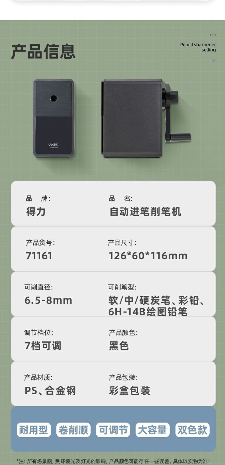 델리 71161 스케치 학생 연필 깎기 손으로 크랭크 연필 깎기 드릴 펜 연필 깎기스토어 가기