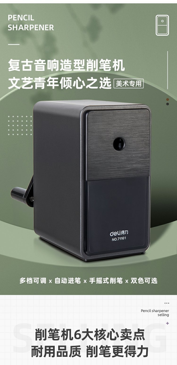 델리 71161 스케치 학생 연필 깎기 손으로 크랭크 연필 깎기 드릴 펜 연필 깎기