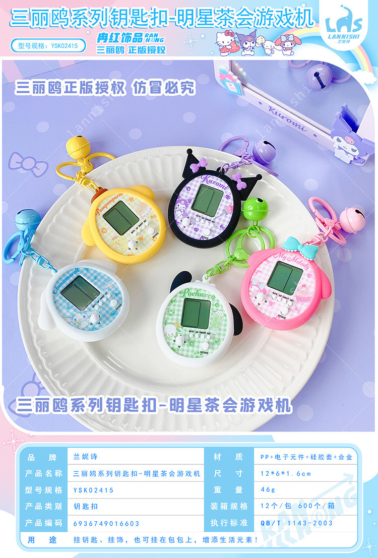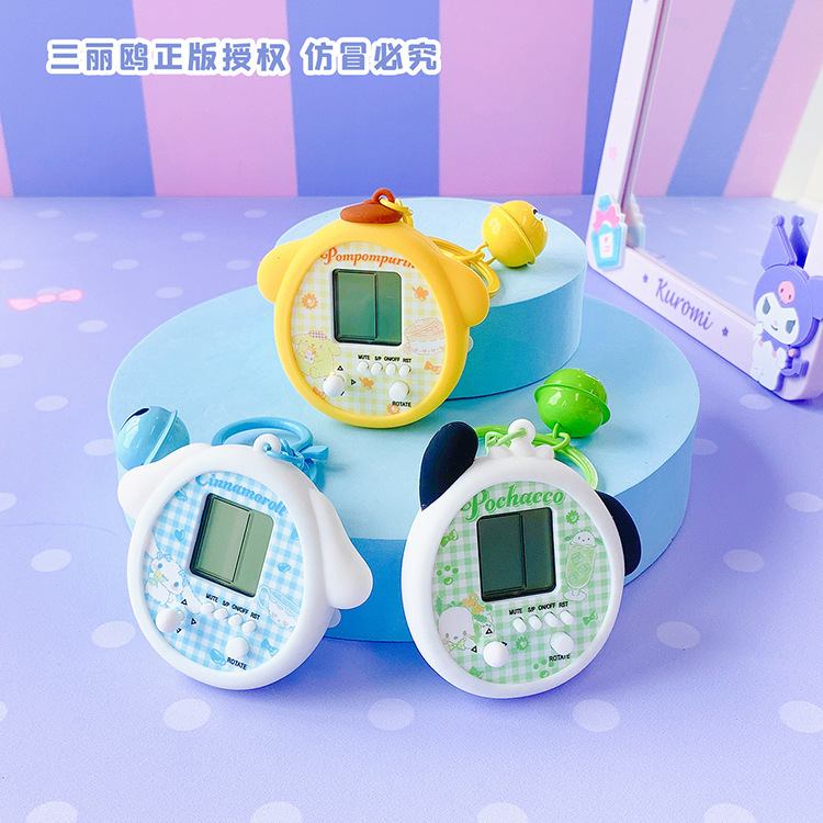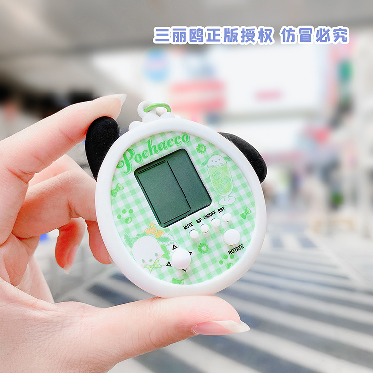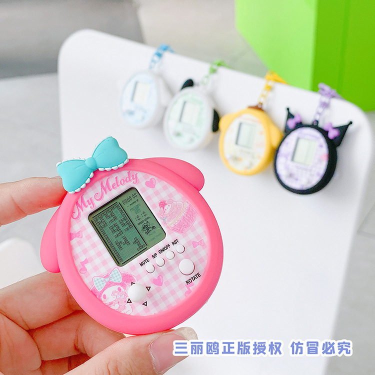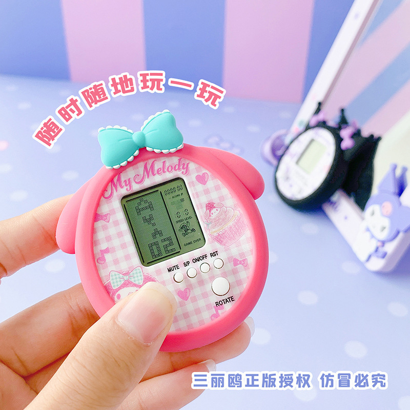 정품 산리오 스타 티 파티 재미있는 장난감 게임 기계 고전 복고풍 테트리스 게임 펜던트