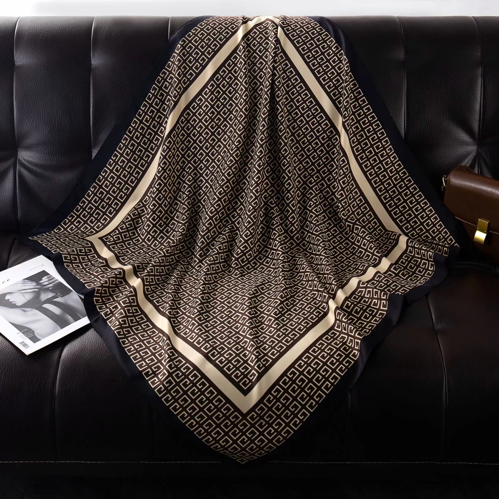 국경 간 도매 2024 새로운 꽃 90 인쇄 큰 사각형 스카프 가을 및 겨울 패션 인기 가방 머리 스카프 여성용