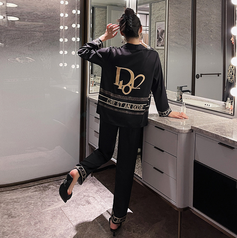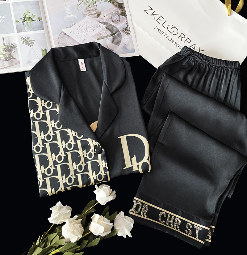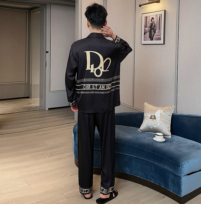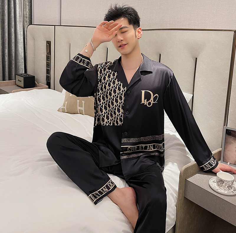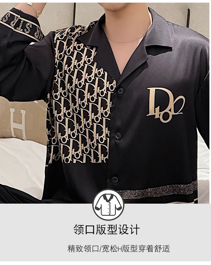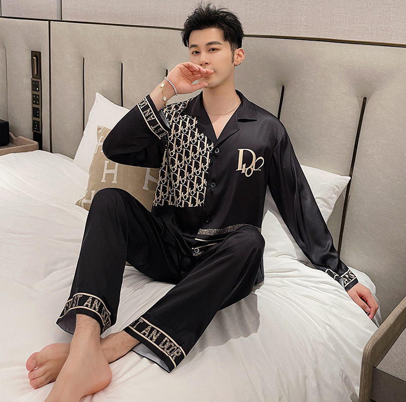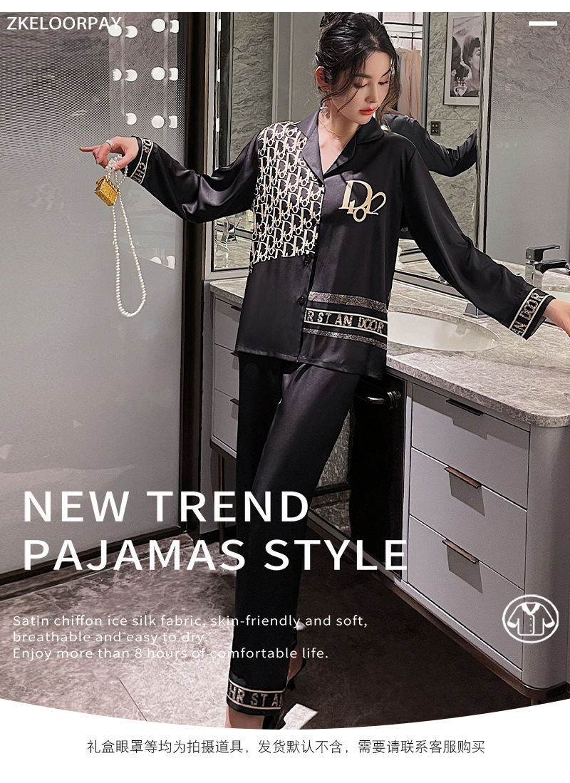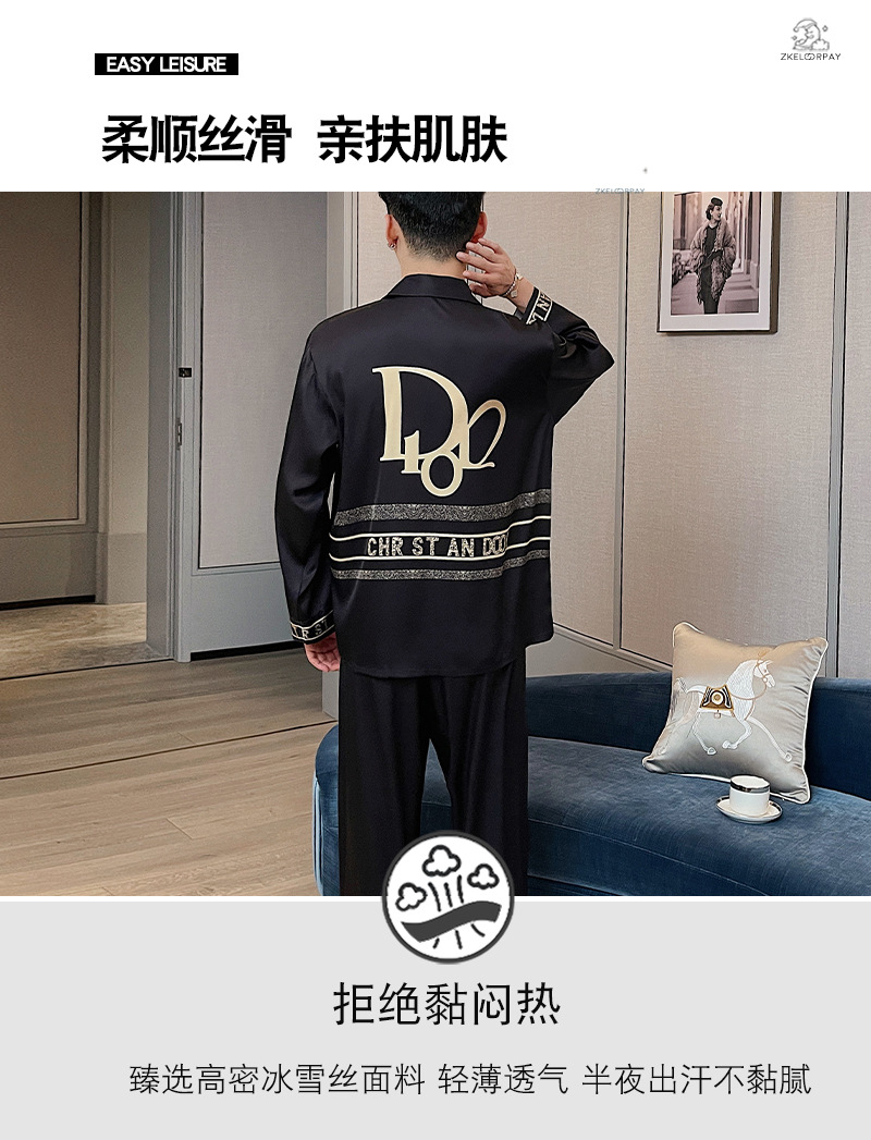 2025년 봄과 가을 신상 커플용 아이스 실크 잠옷 여성 인터넷 스타 스타일 모조 실크 대형 사이즈 홈웨어 남성용 여름스토어 가기