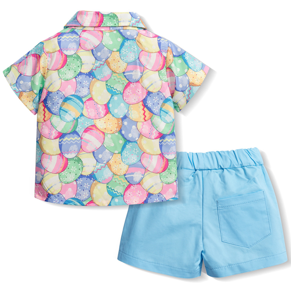 국경 간 부활절 소년 부활절 달걀 소년의 새로운 반팔 반바지 투피스 세트 아마존 핫 세일
