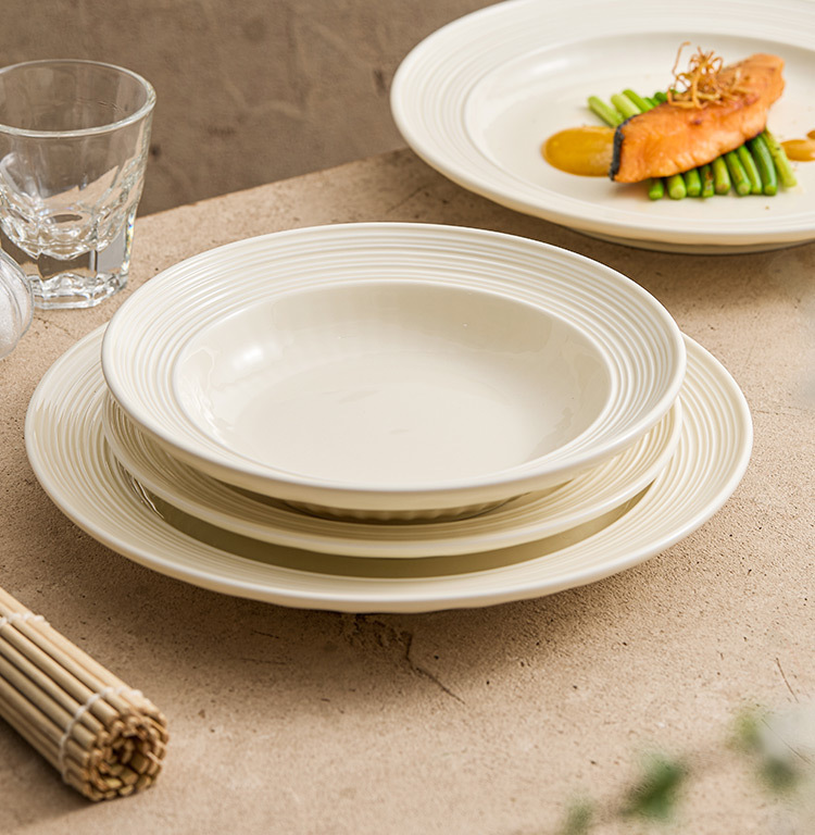 • 10 인치 크림 노란색 브러시 엠보싱 얕은 플레이트