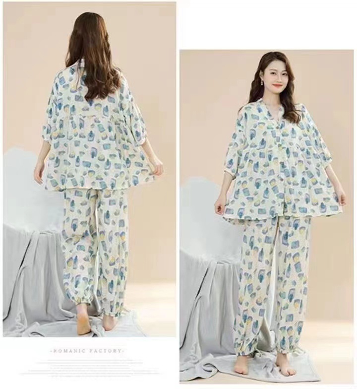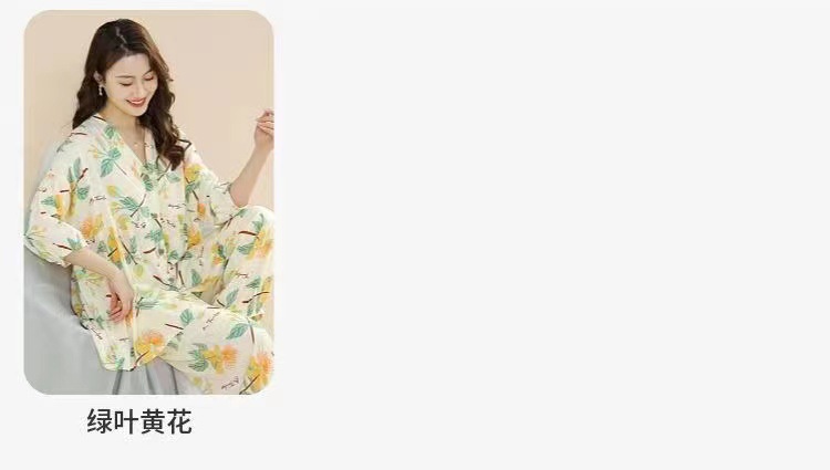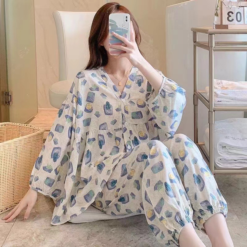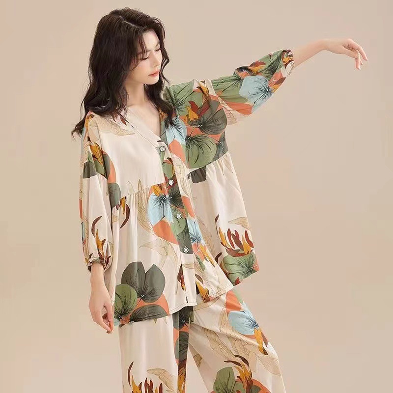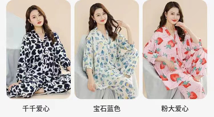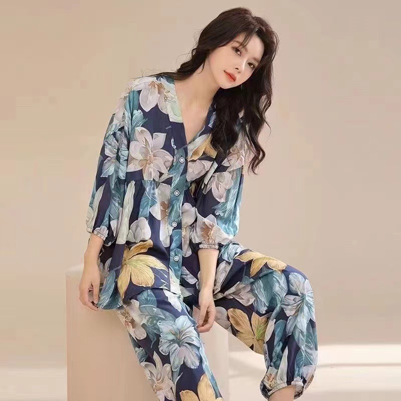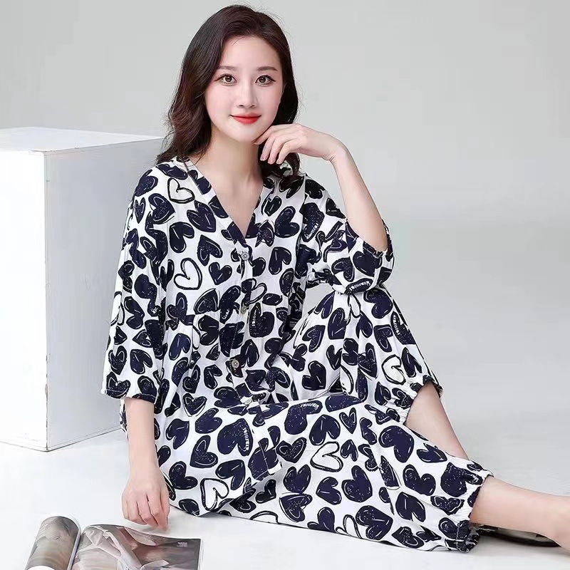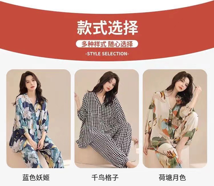 봄과 여름 새로운면 실크 파자마 세트 여성용 3/4 소매 플러스 사이즈 느슨한 에어컨 의류 홈 착용 투피스 세트스토어 가기