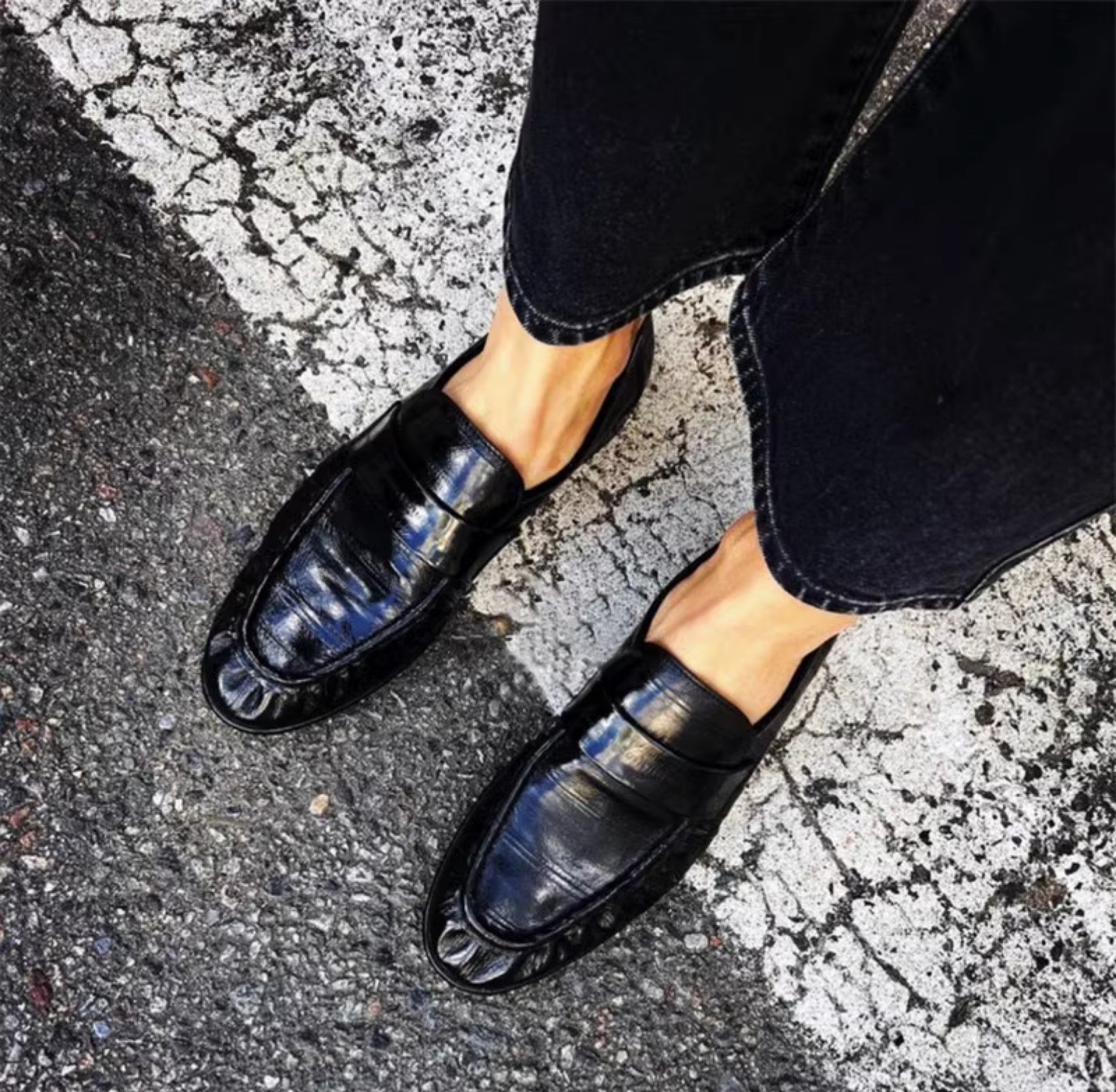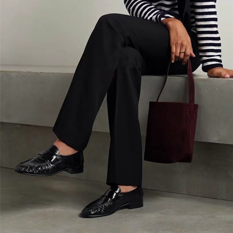 원래 통근 신발 간단한 주름 장어 가죽 싱글 신발 슬립 온 로퍼 여성용 프랑스 TR 가죽 신발 행스토어 가기