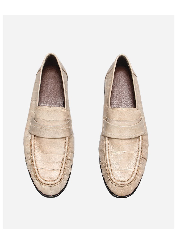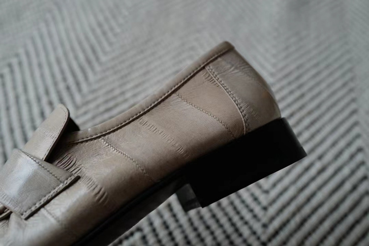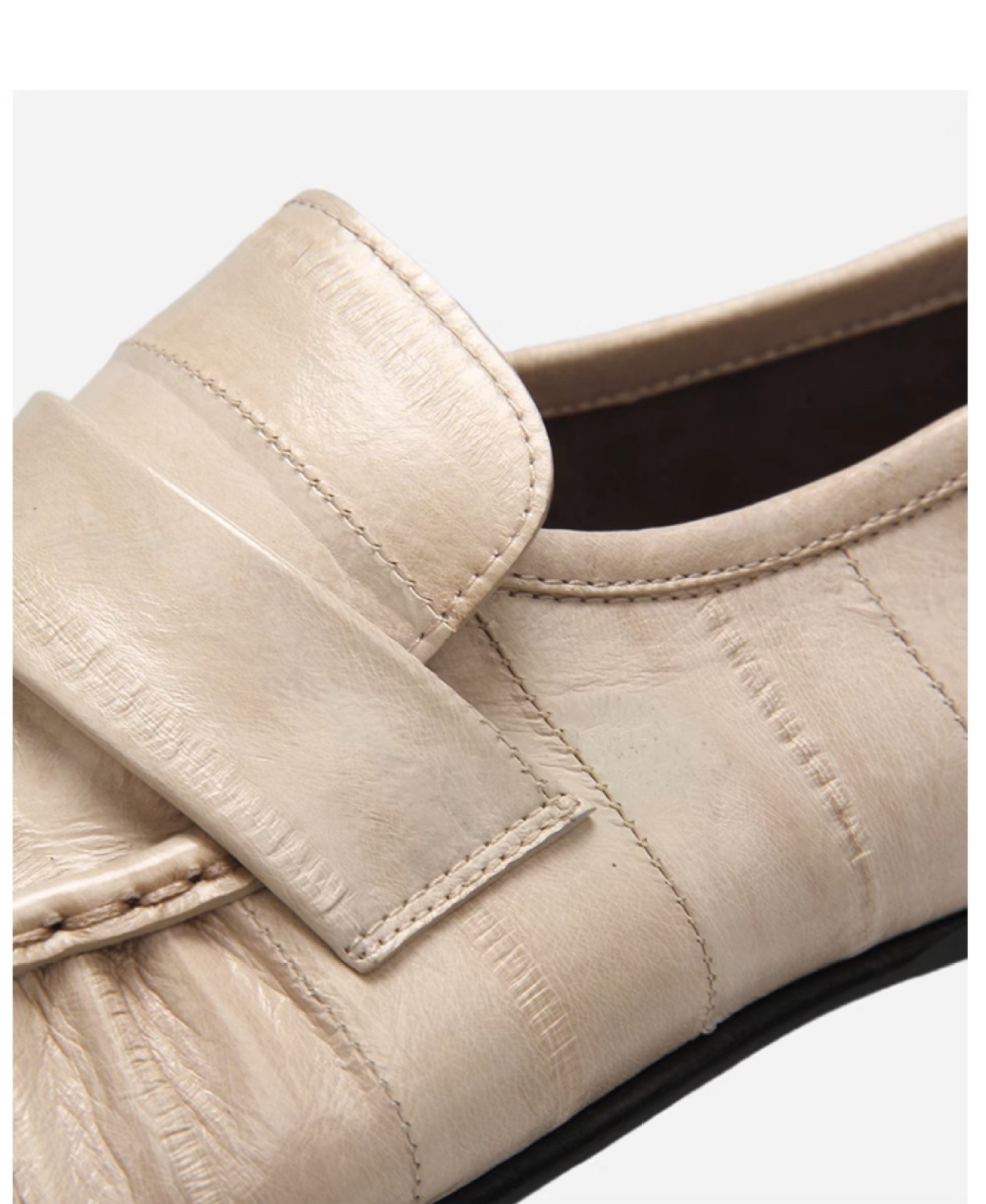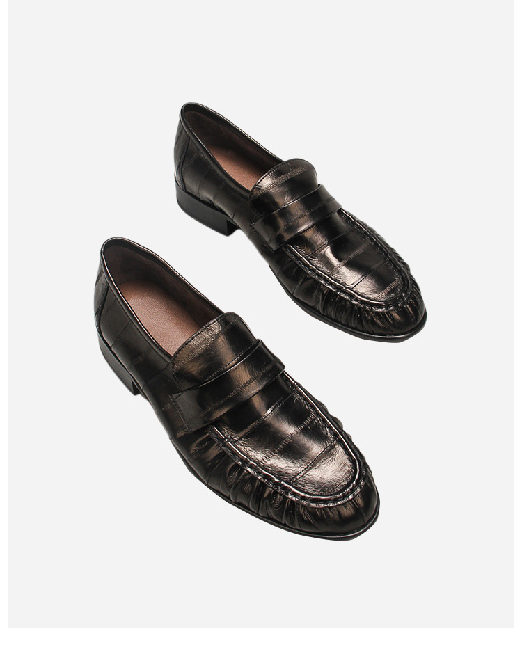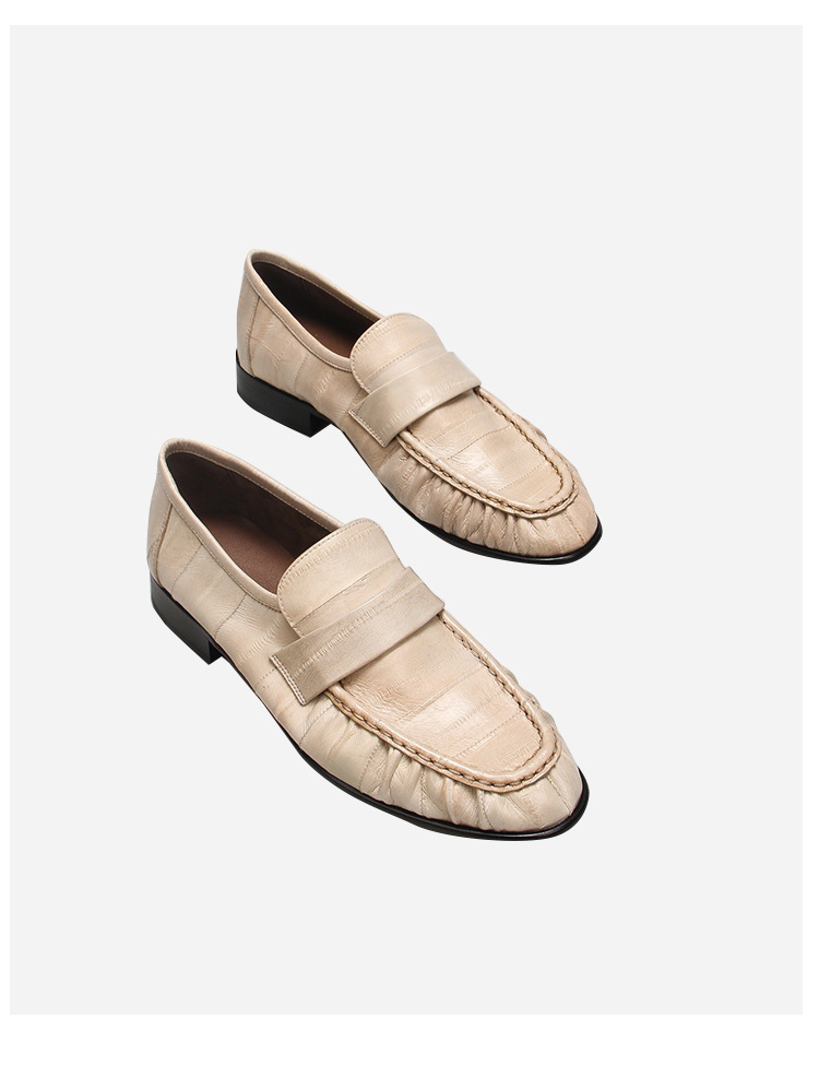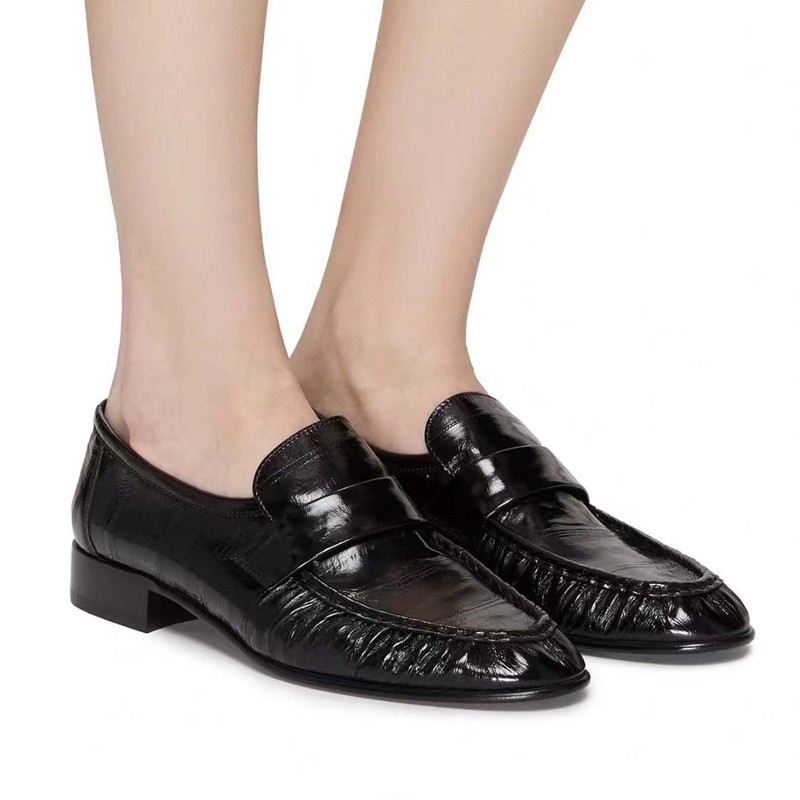 원래 통근 신발 간단한 주름 장어 가죽 싱글 신발 슬립 온 로퍼 여성용 프랑스 TR 가죽 신발 행