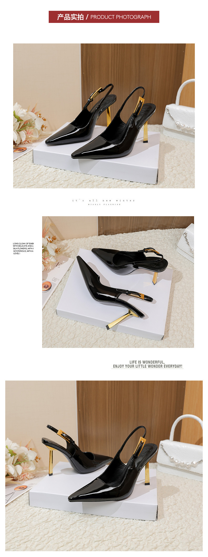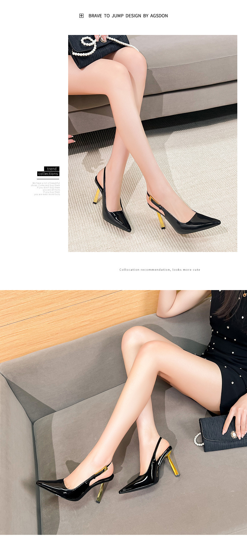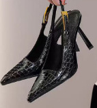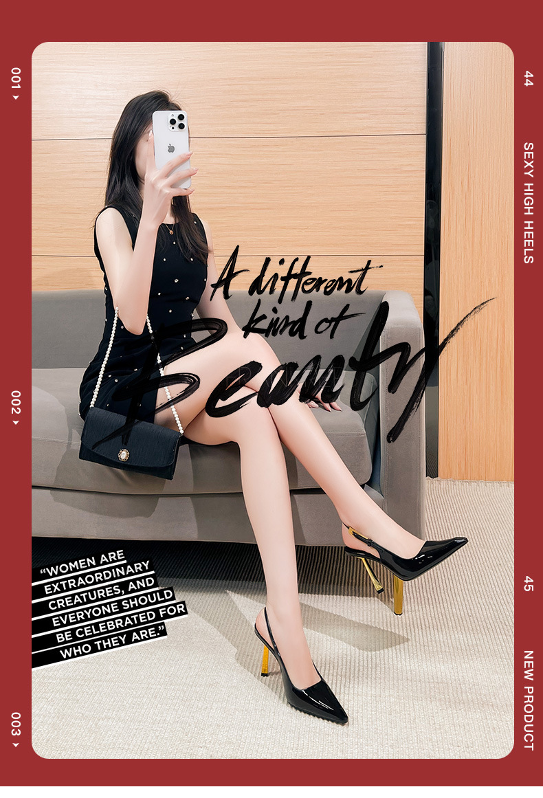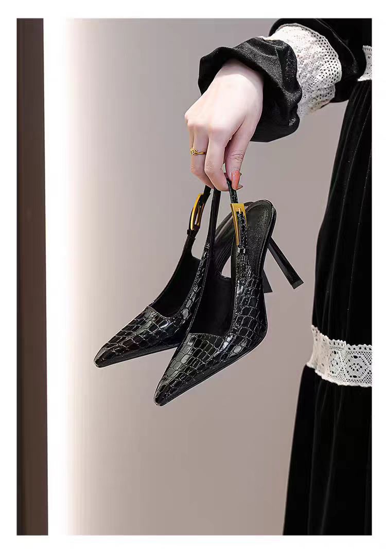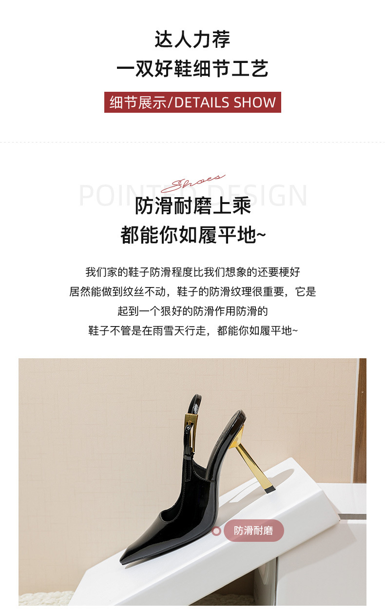 여성용 블랙 페이턴트 가죽 포인티드 토 하이힐, 슬림 힐, 2025년 신상 스타일, 작은 골드 스트립 섹시 싱글 슈즈, 프렌치 샌들스토어 가기