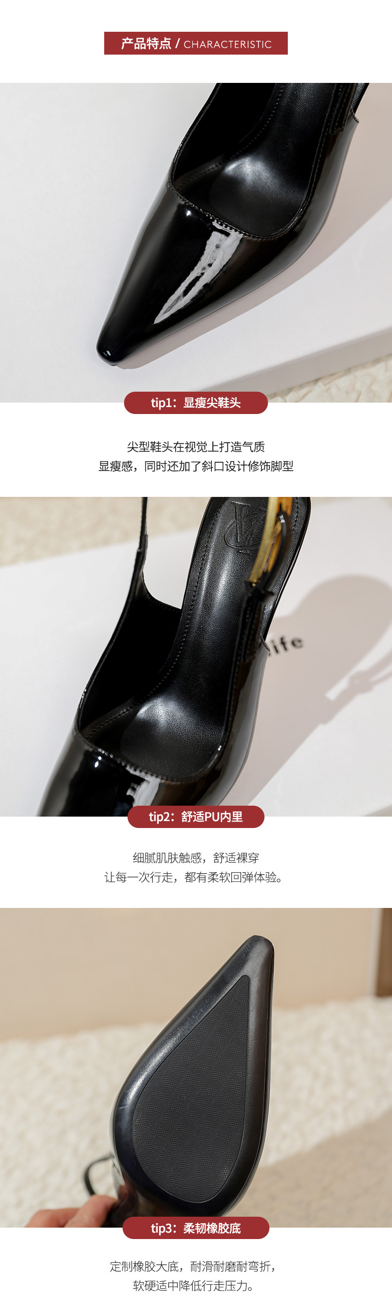 • 검은 발 뒤꿈치 (발 뒤꿈치 높이 7cm)