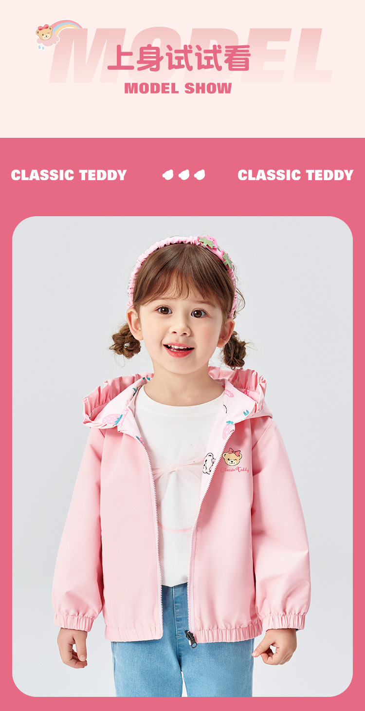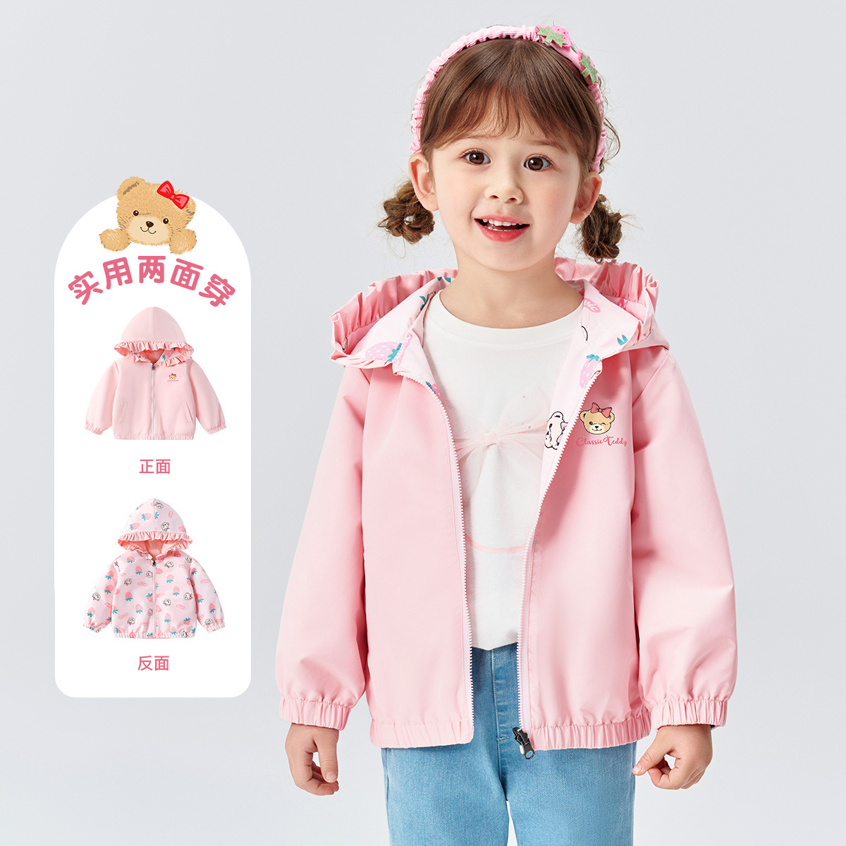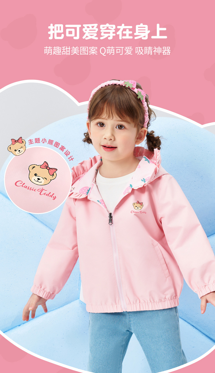 클래식 테디 여아용 재킷 어린이 후드 가디건 상의 중소 아동복 봄 양면 착용 옷 가을 신상