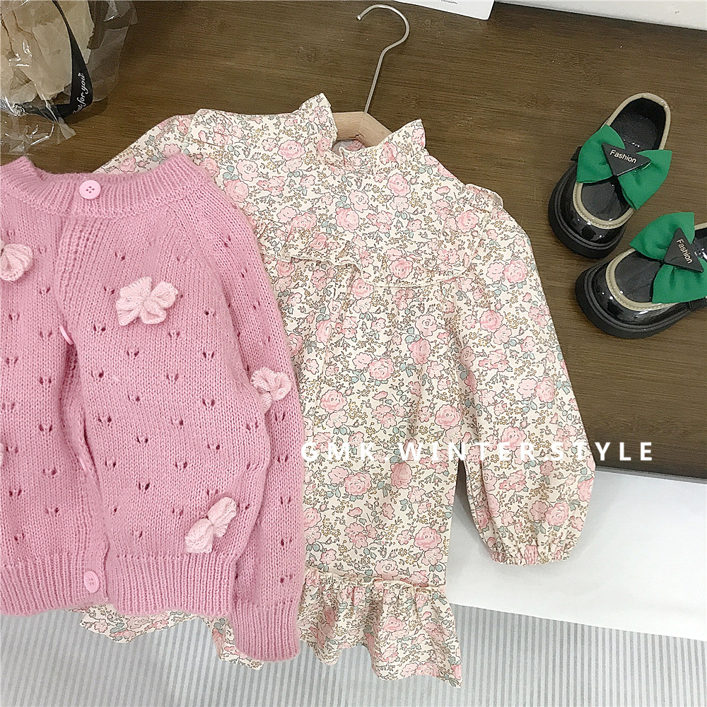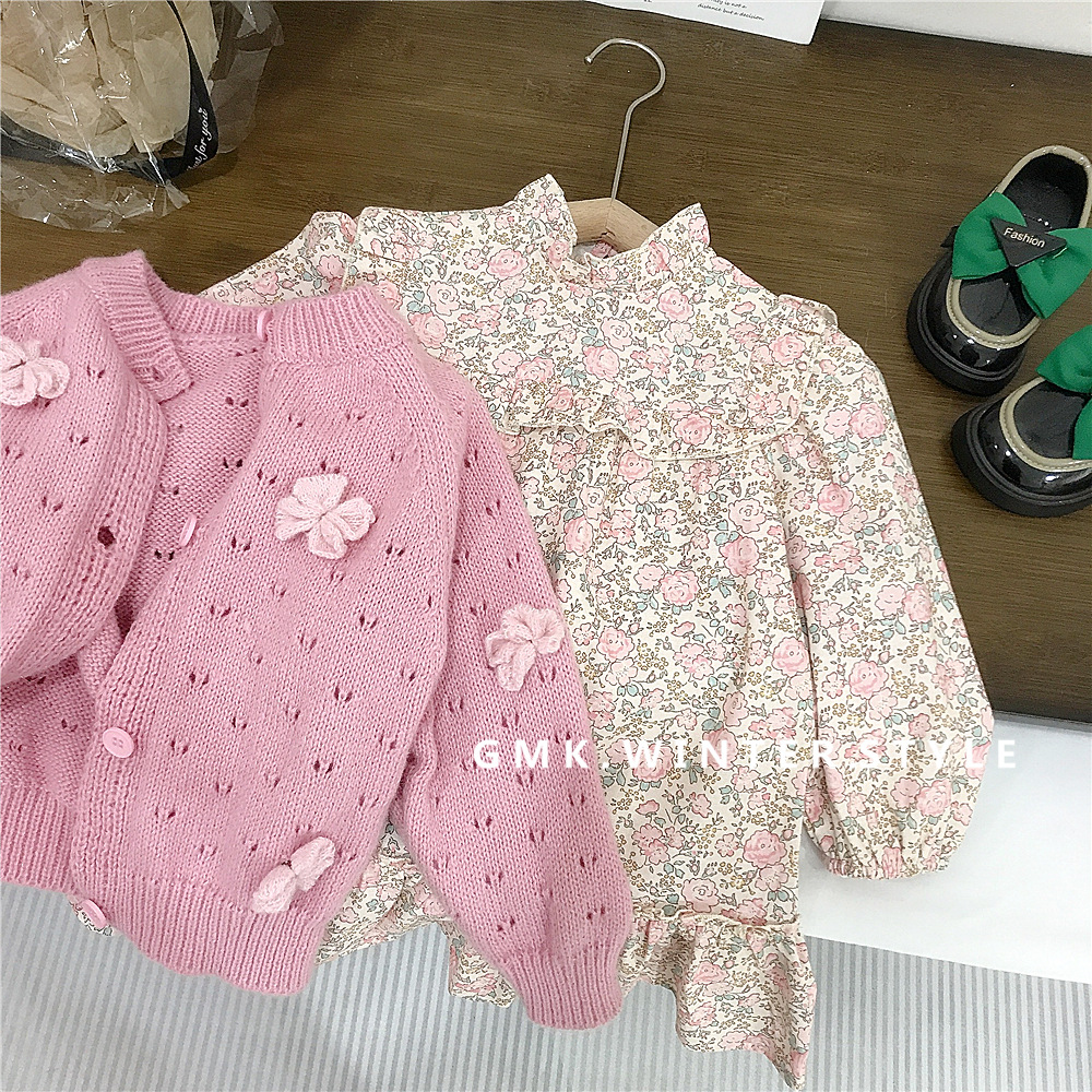 소녀 스웨터 플로럴 스커트 세트 봄과 가을 새로운 어린이 서양식 소녀 아기 봄 스웨터 대외 무역스토어 가기