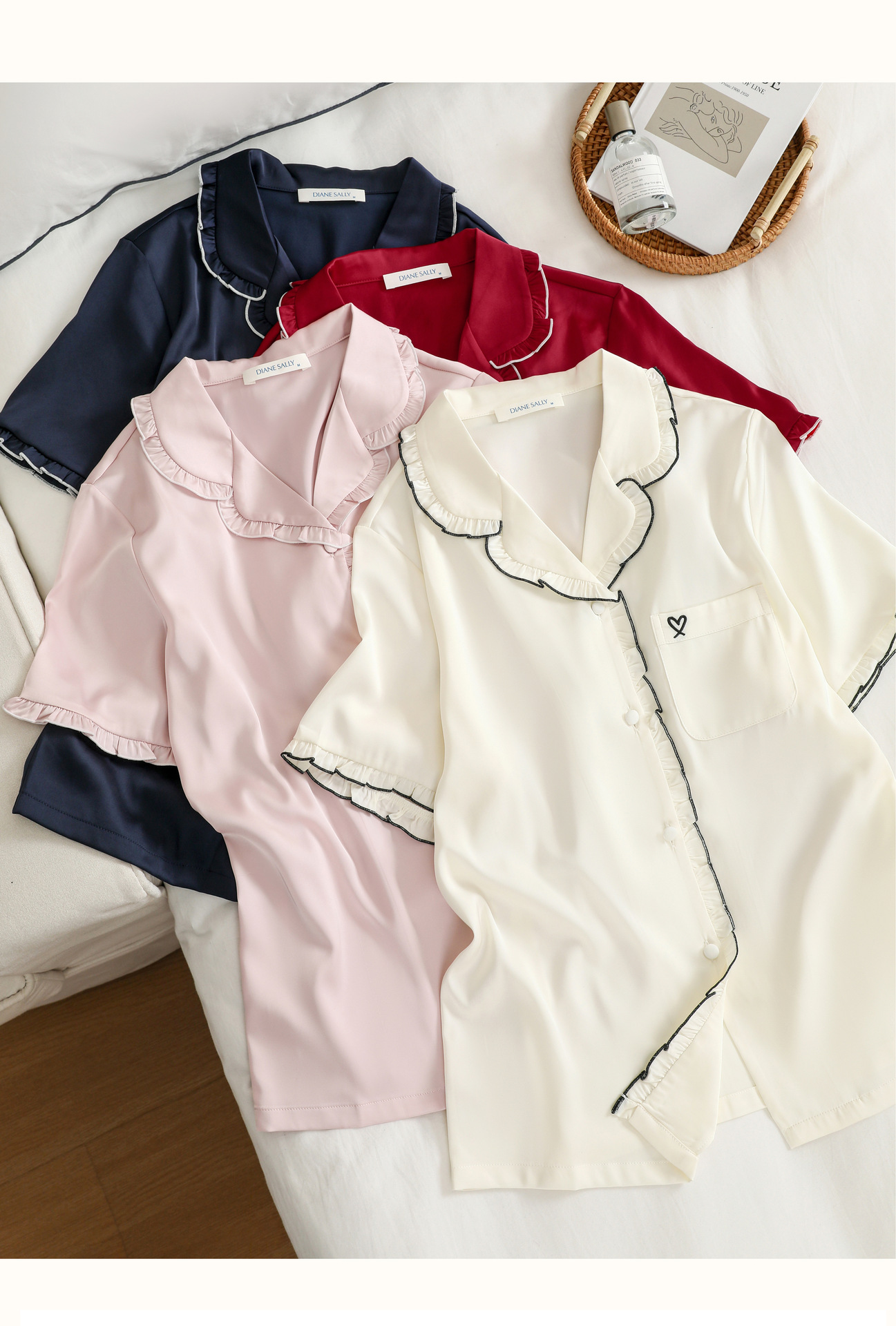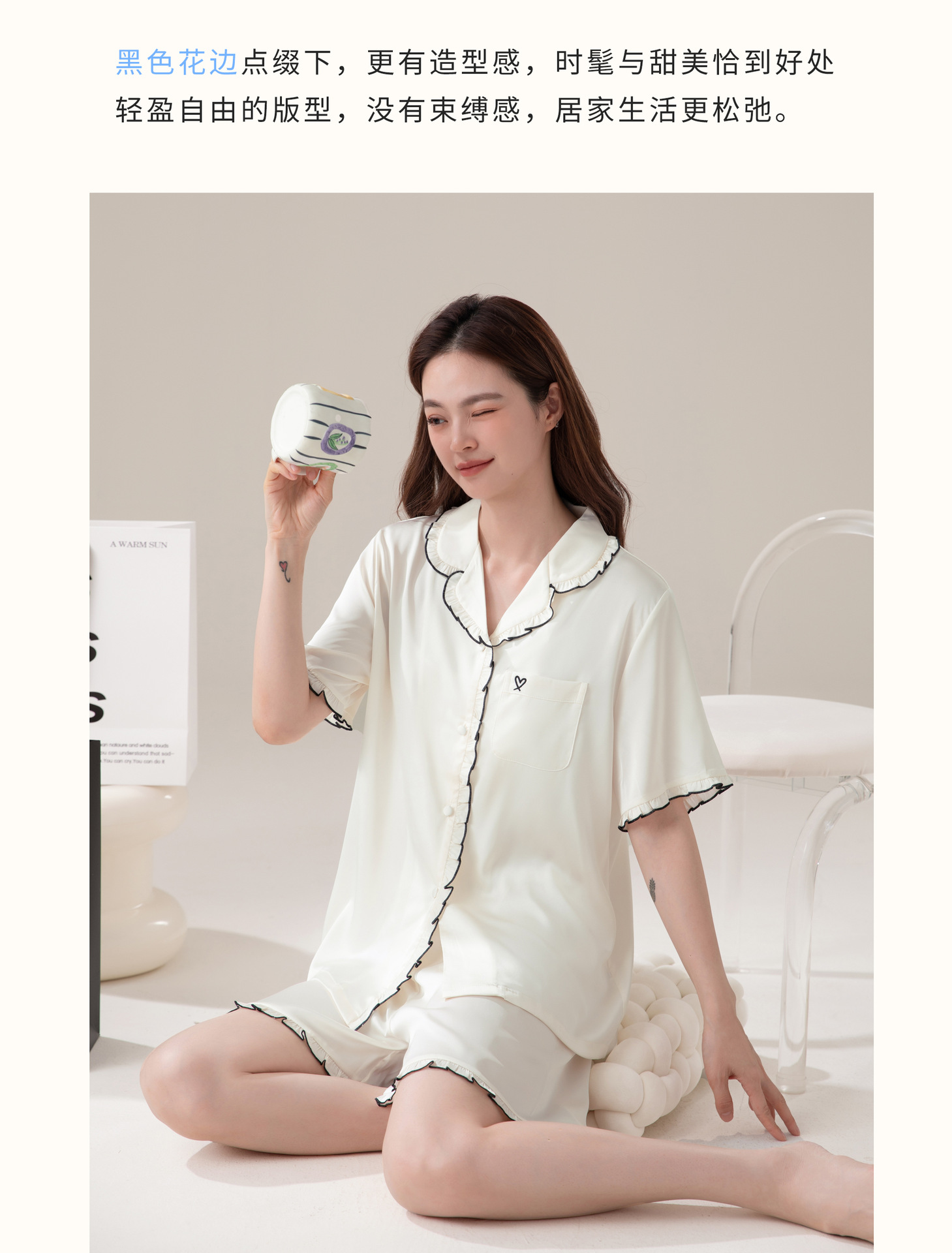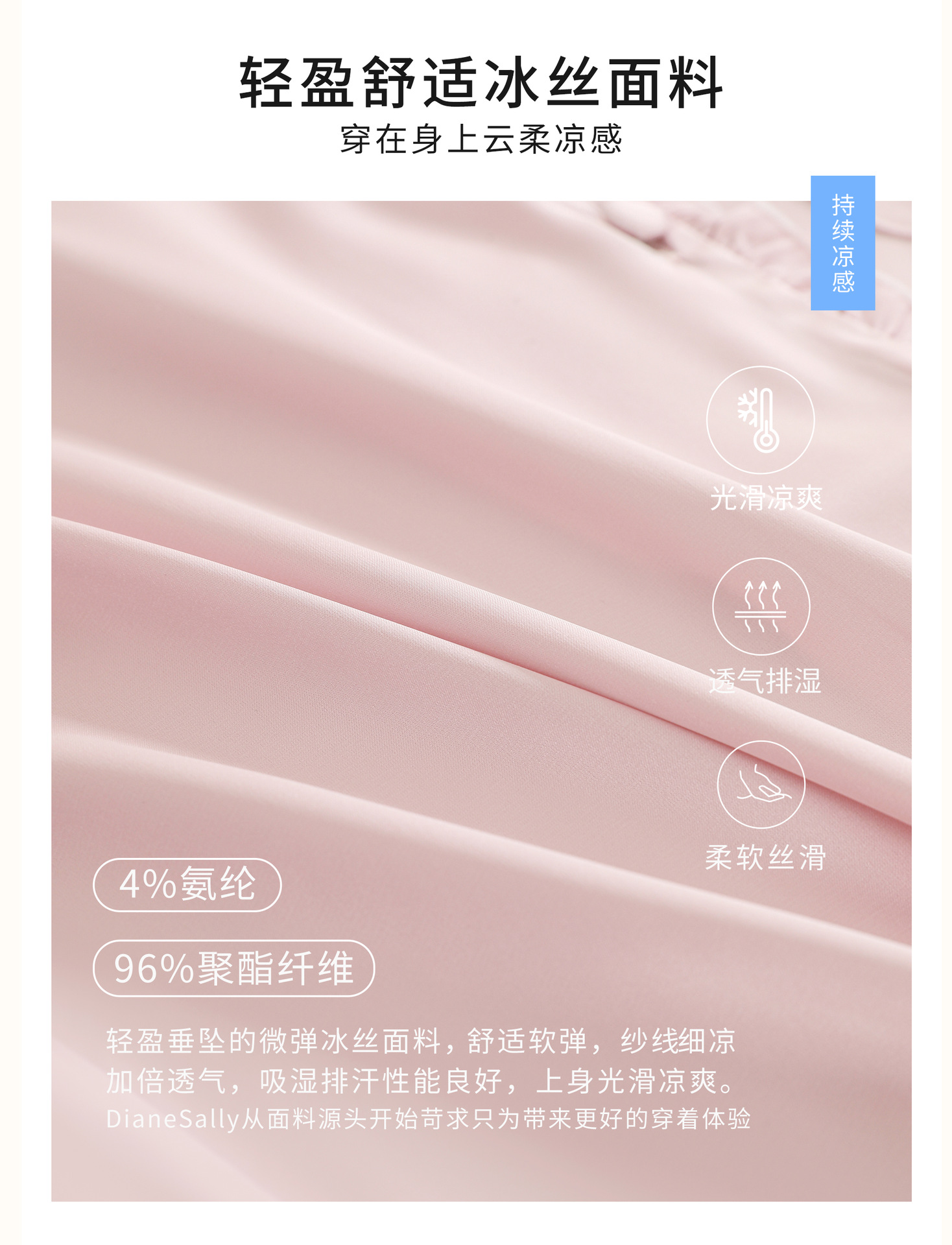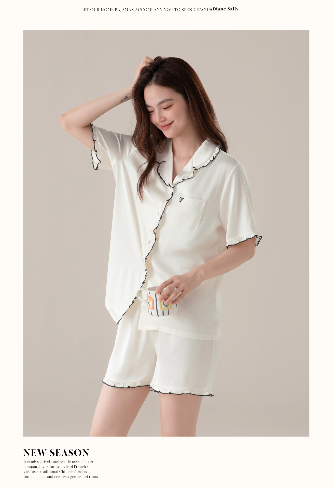 다이앤 샐리 프랑스 달콤한 반팔 아이스 실크 파자마 여성용 얇은 느슨한 홈 세트 소녀의 홈 의류스토어 가기