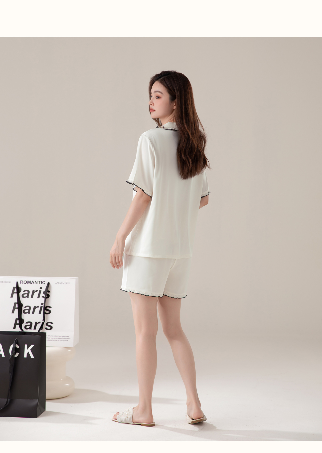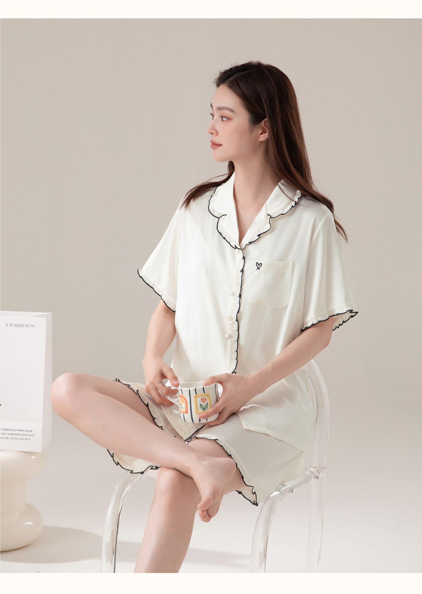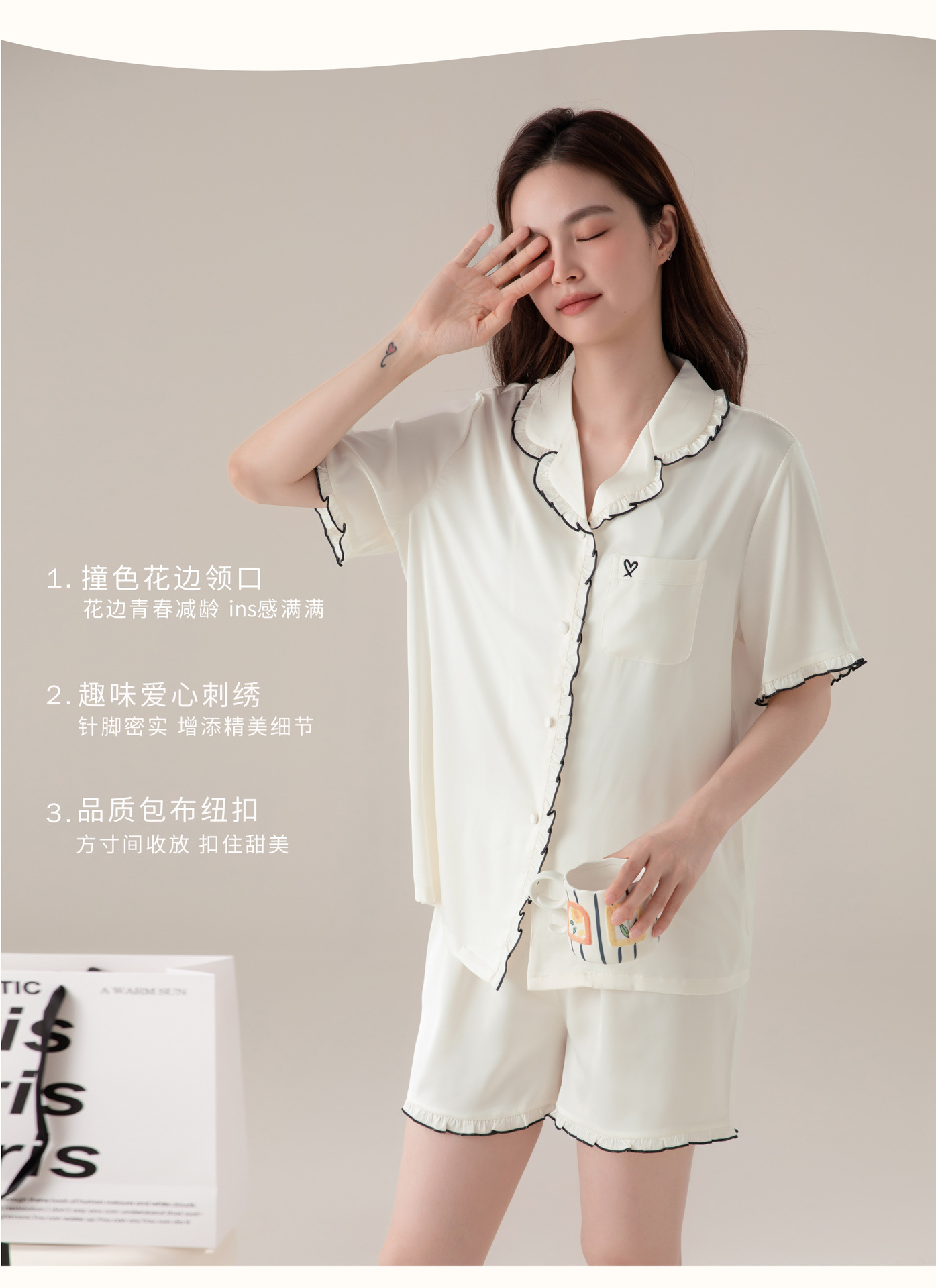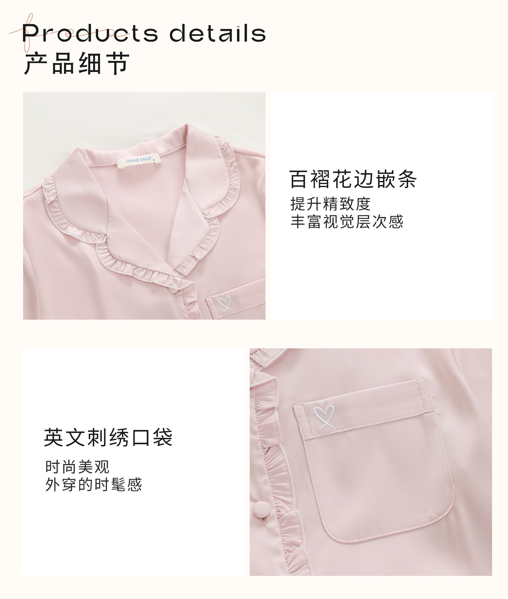 다이앤 샐리 프랑스 달콤한 반팔 아이스 실크 파자마 여성용 얇은 느슨한 홈 세트 소녀의 홈 의류스토어 가기