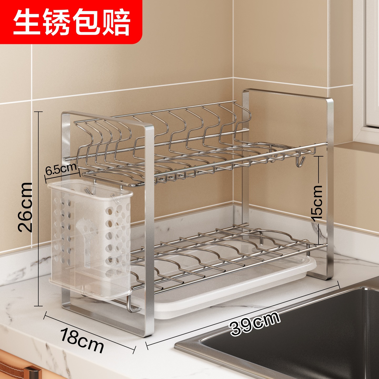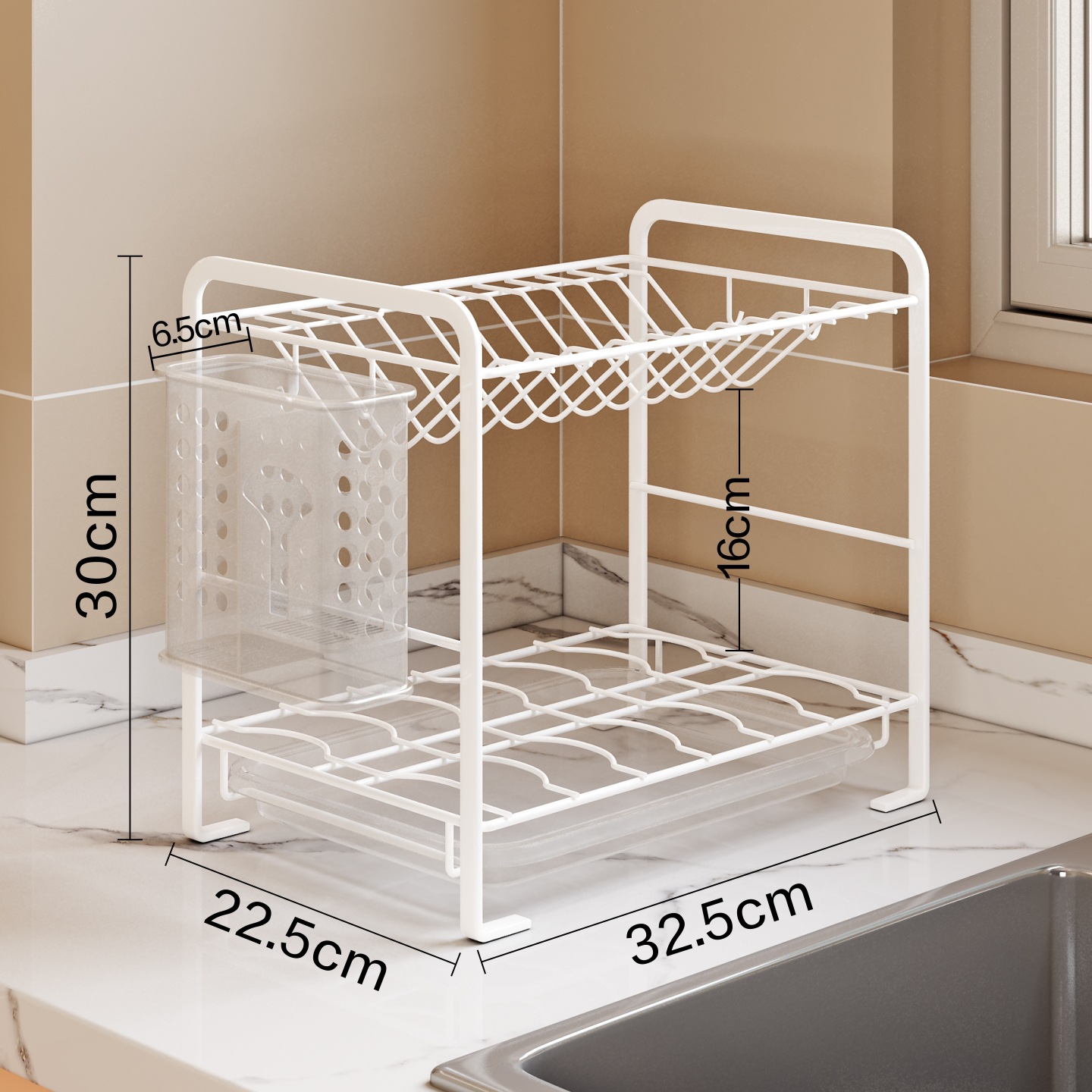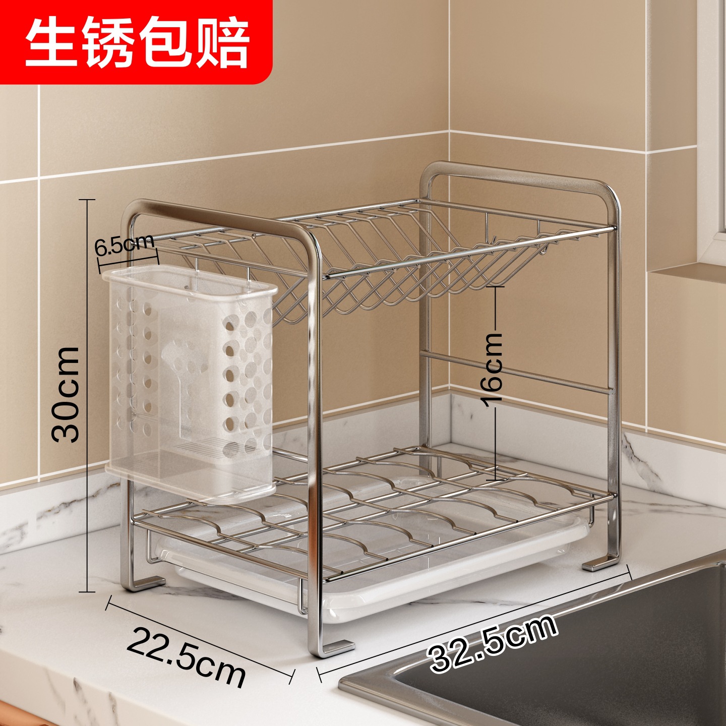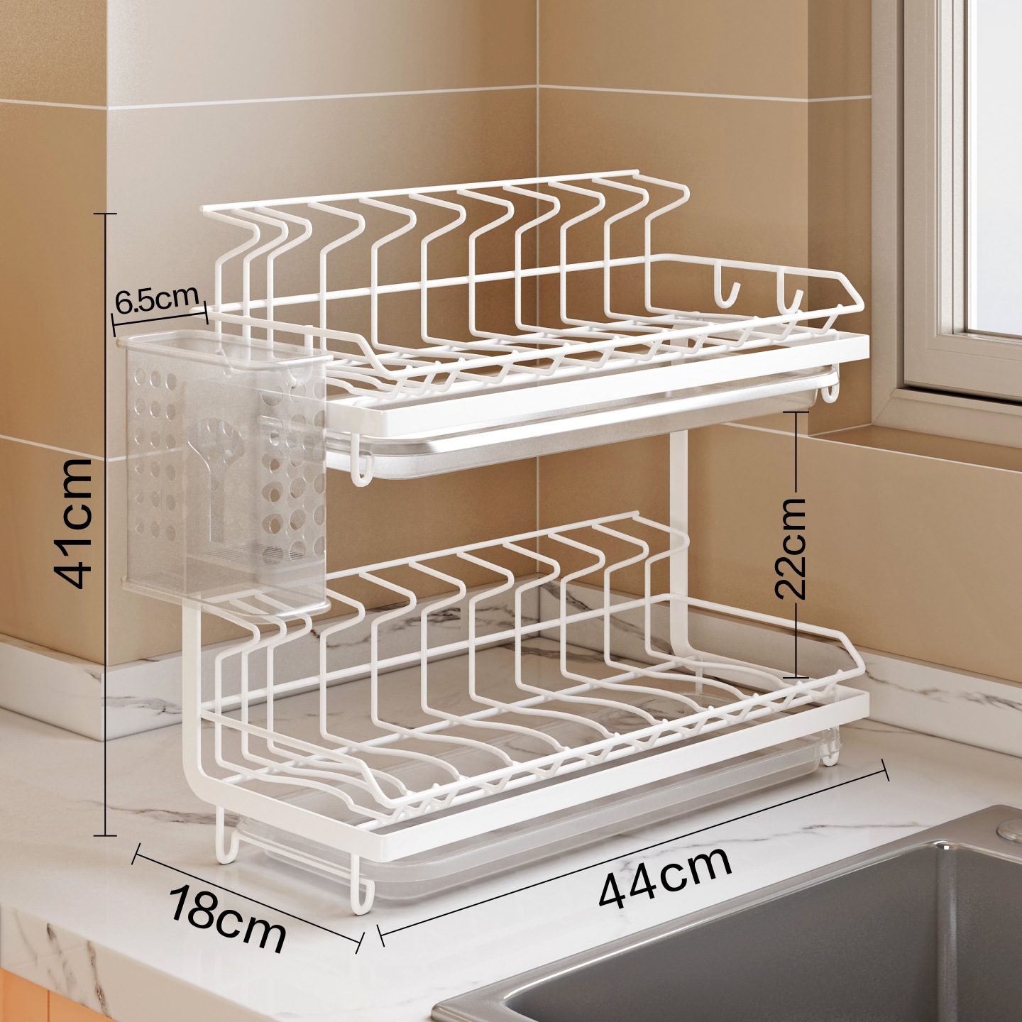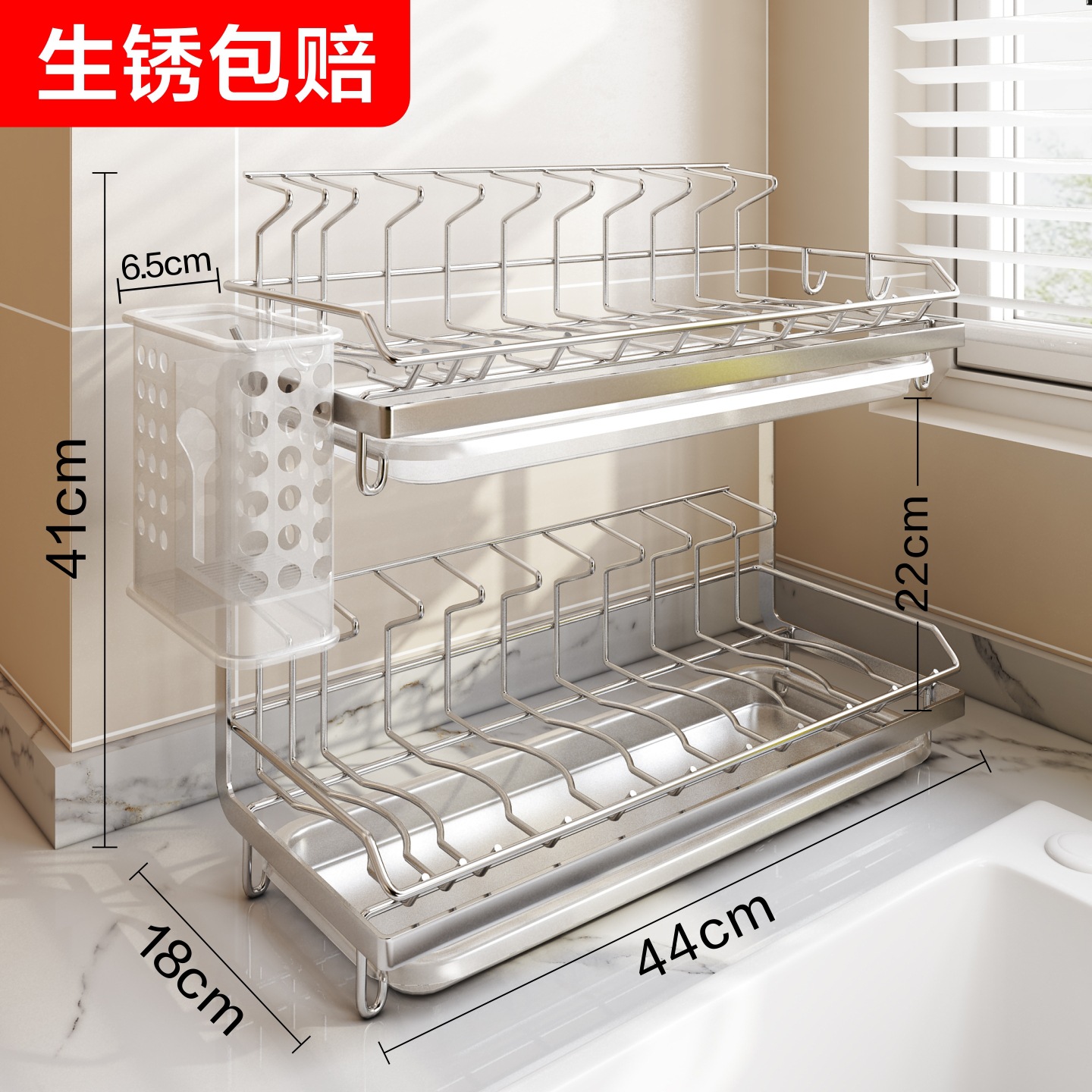 주방 접시 건조대, 접시, 그릇, 수저 보관 및 배수대, 무타공 좁은 가장자리 이중 레이어 조리대 이중 레이어 수납