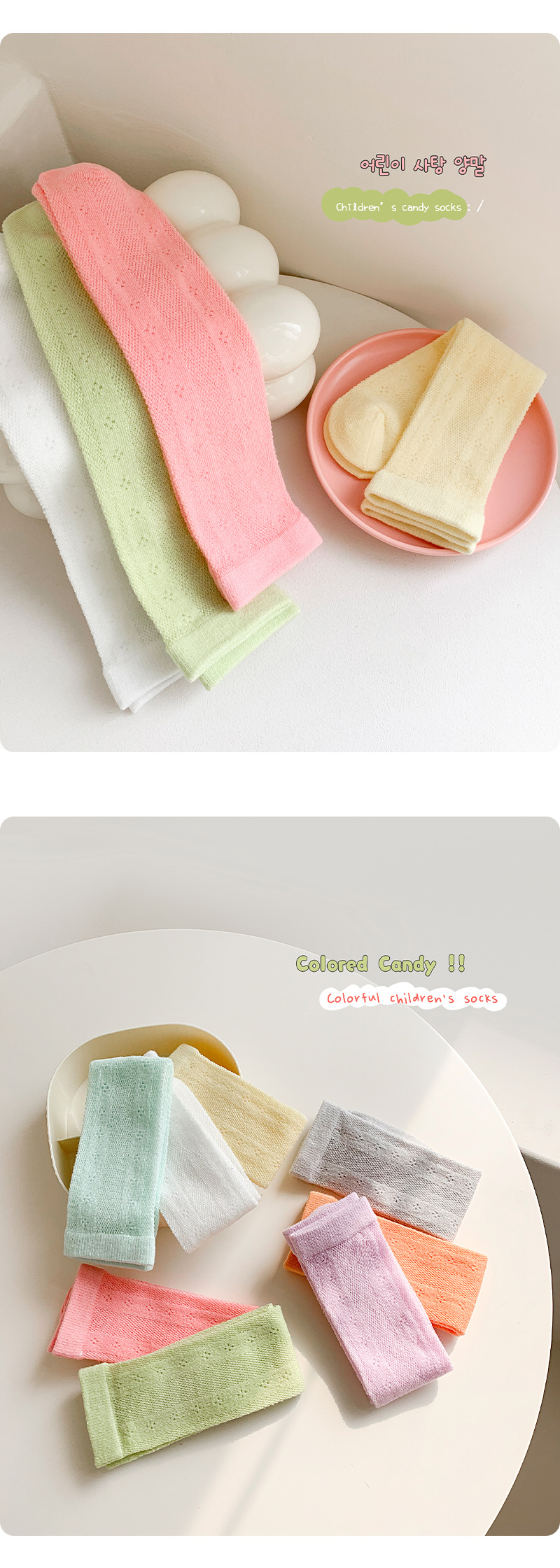 얇은 메쉬 어린이 양말 2024 여름 새로운 단색 캔디 컬러 소년 소녀 어린이 송아지 양말 도매스토어 가기