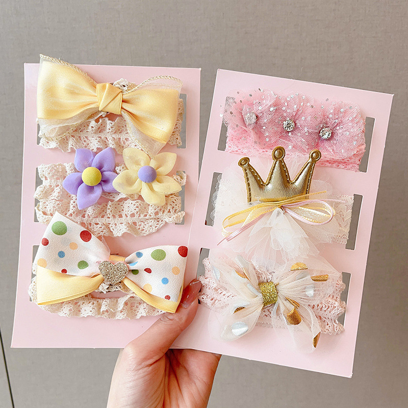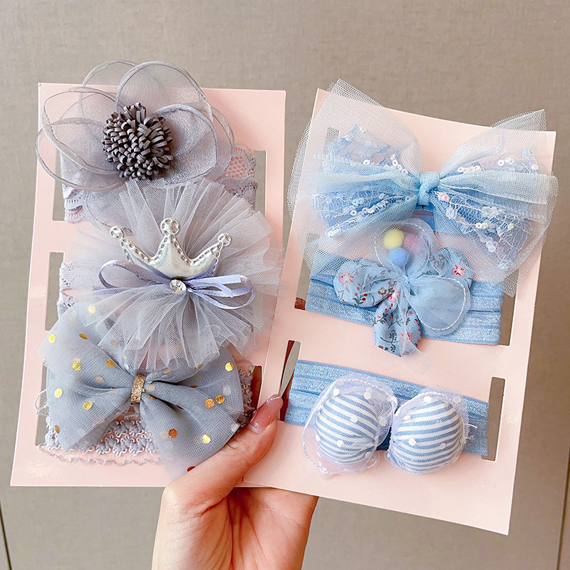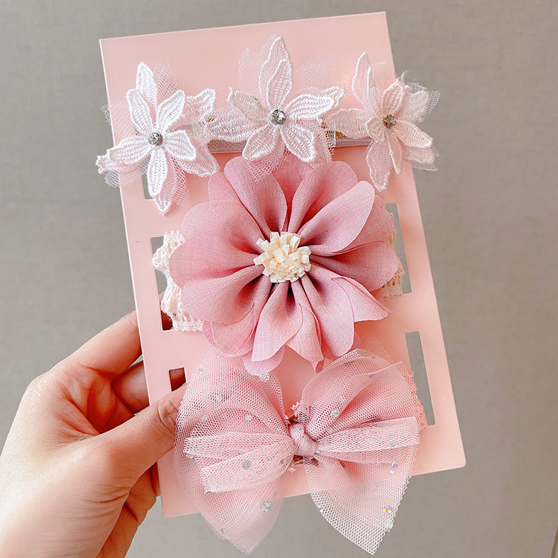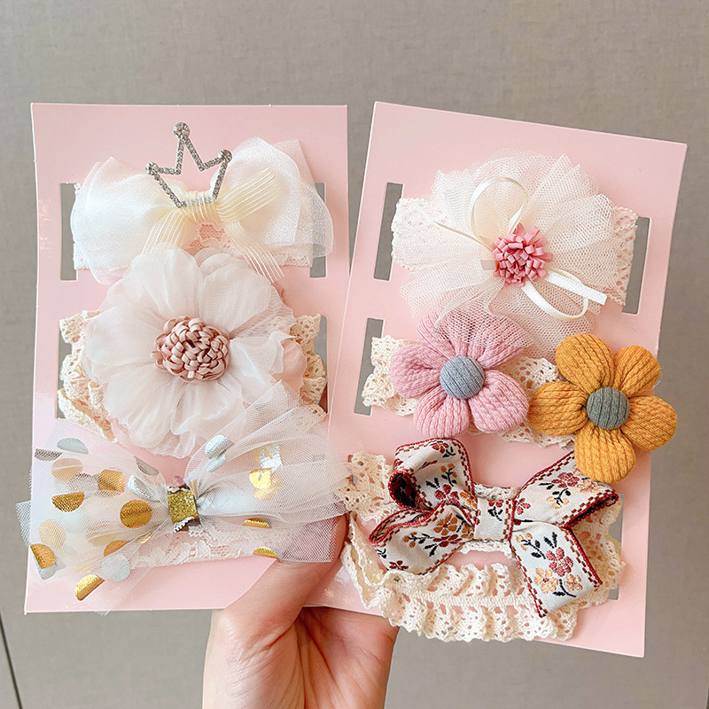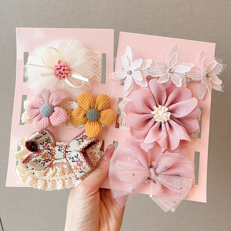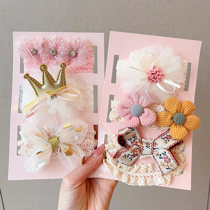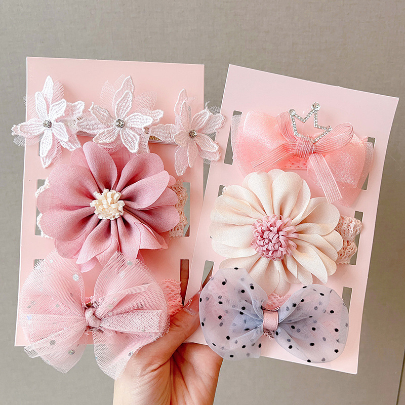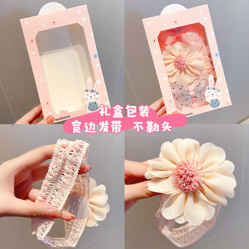 • 크라운 + 핑크 꽃 헤어 밴드 6 피스 세트 [하이 엔드 선물 상자]]
