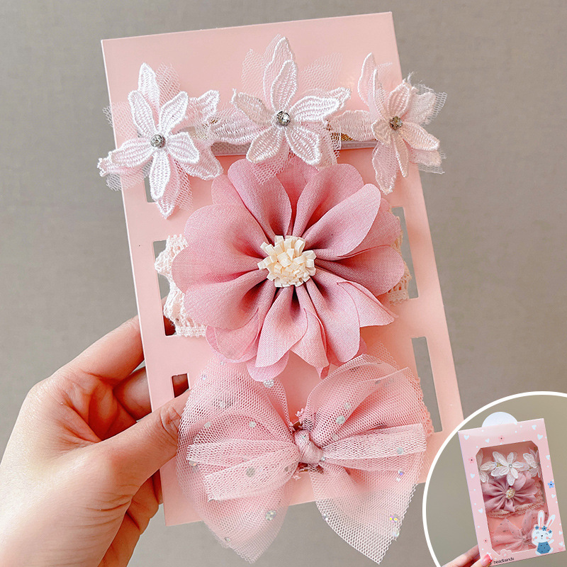 • 3 의 핑크 꽃 헤어 밴드 세트 [선물 상자 폴드]