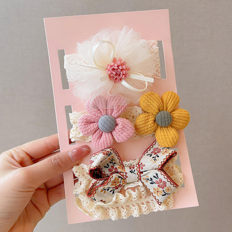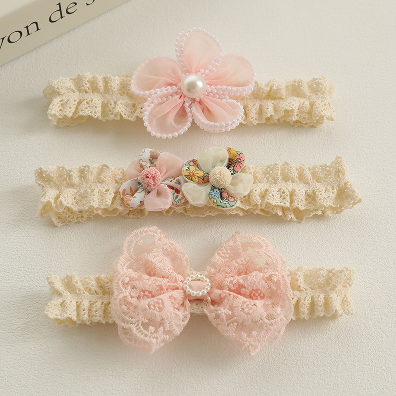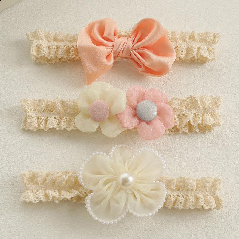• 핑크 꽃 헤어 밴드 3 피스 세트 [opp 가방]