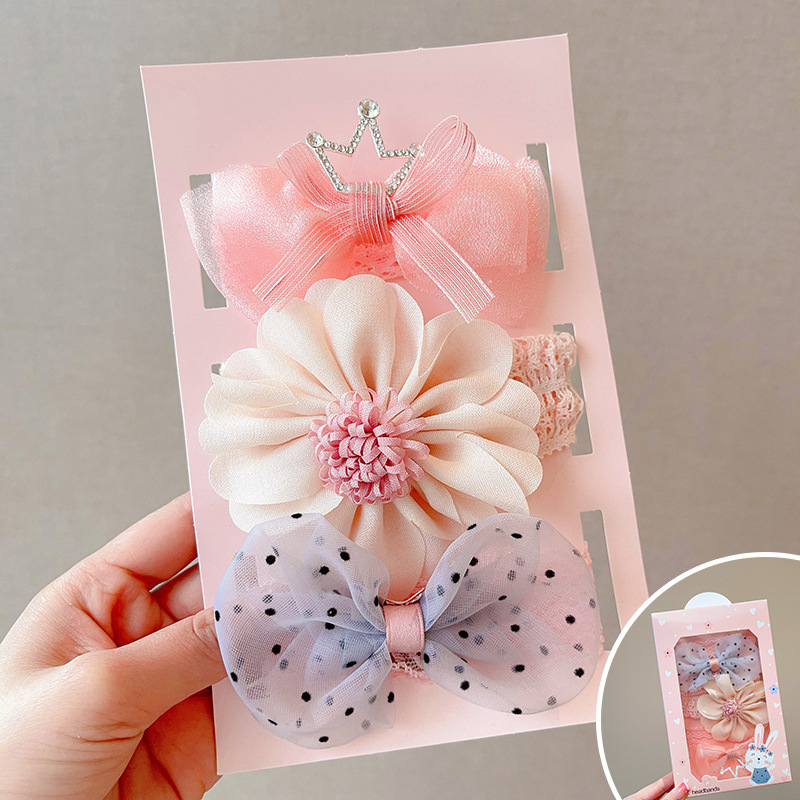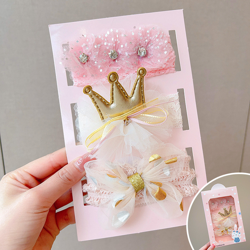 • 핑크 활 크라운 헤어 밴드 3 피스 세트 [하이 엔드 선물 상자]]