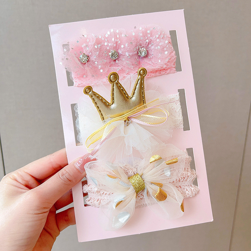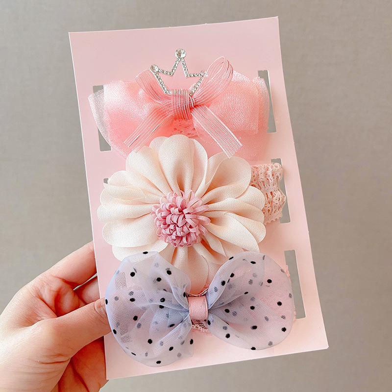 • 핑크 활 크라운 헤어 밴드 3 피스 세트 [opp 가방]