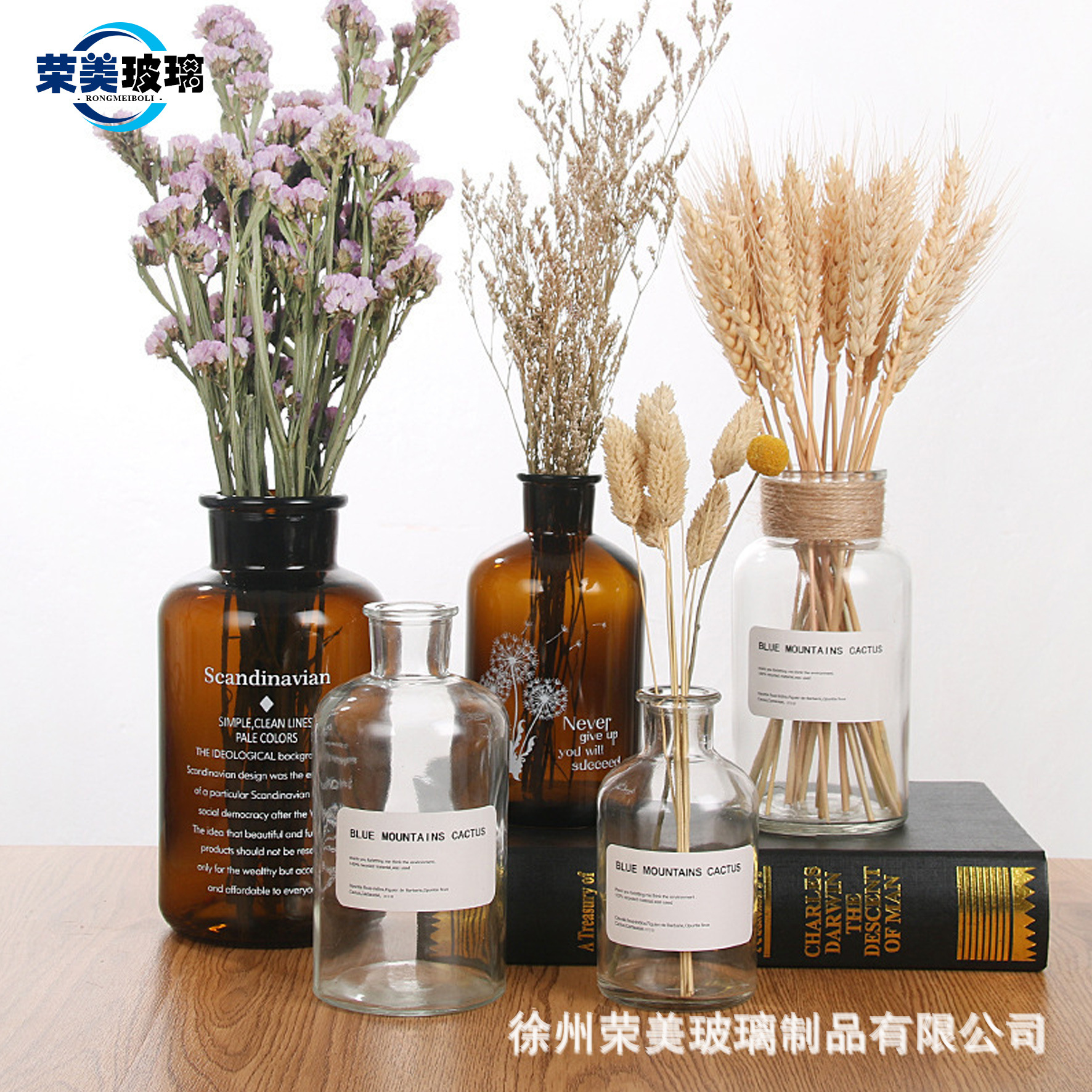 북유럽 스타일의 유리 시약 꽃병 집 마른 꽃병 거실 물 꽃병 바탕 화면 장식 꽃병 장식