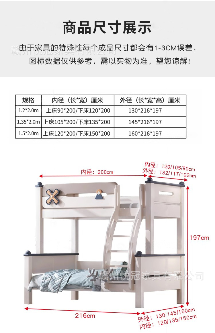 • 사다리 침대 + 책꽂이 + 더블 서랍 + 상부 및 하부 매트리스