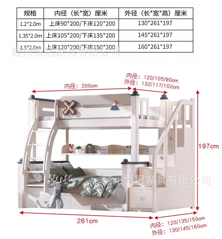 • 사다리 캐비닛 침대 + 더블 서랍 + 상부 및 하부 매트리스