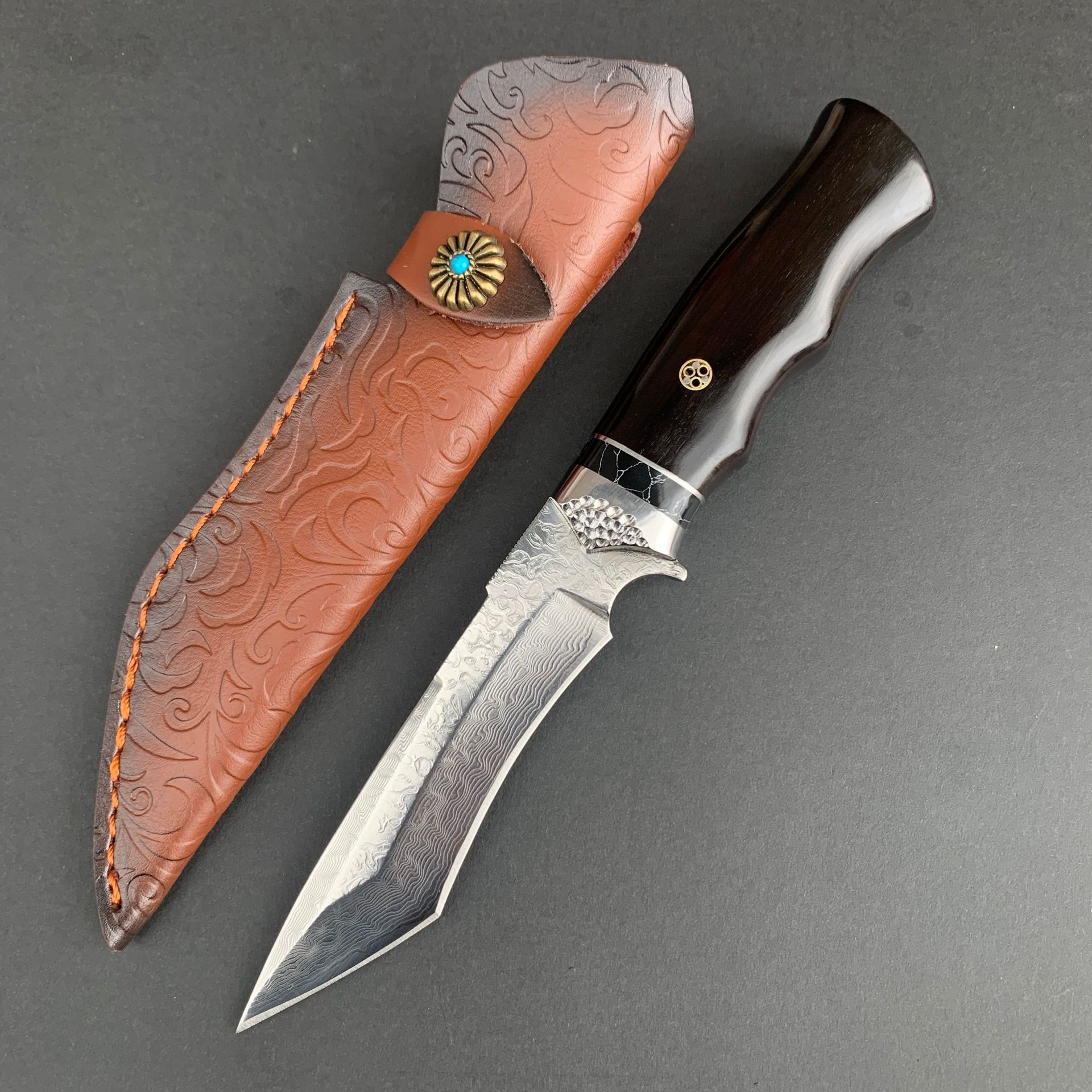 다마스커스 강철 vg10 야외 칼 날카로운 높은 경도 야외 통합 스트레이트 칼 야생 고기 캠핑 생존 칼