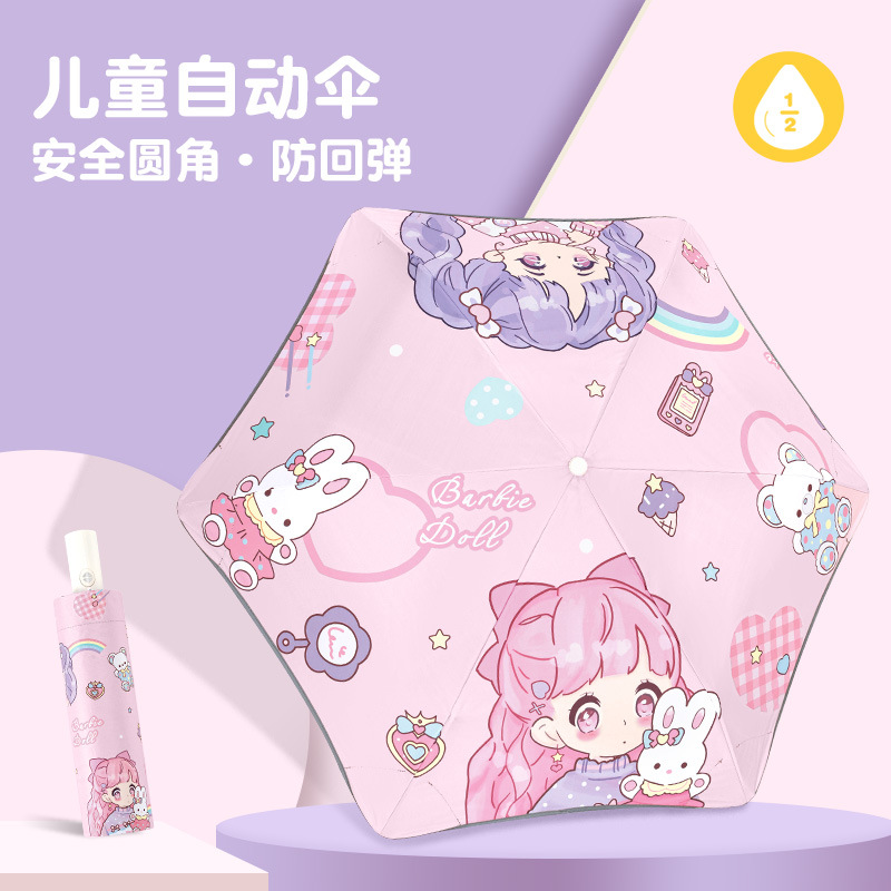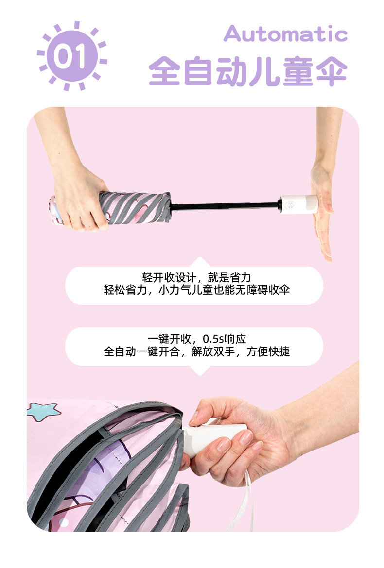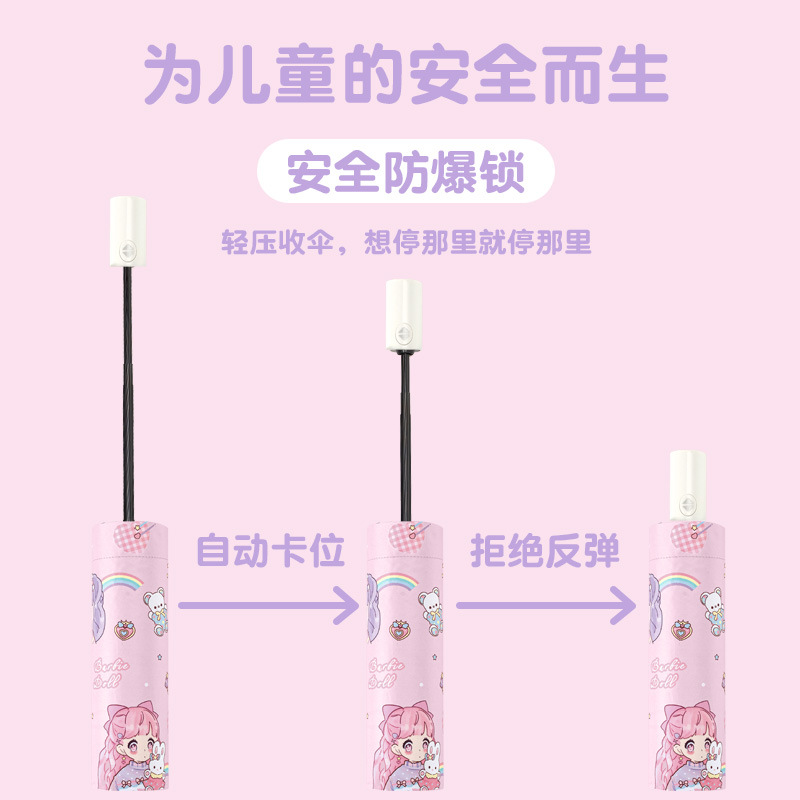 안전 어린이 우산 여자 초등학생 접는 여자 귀여운 어린이 자동 어린이 우산 소년 학교 우산
