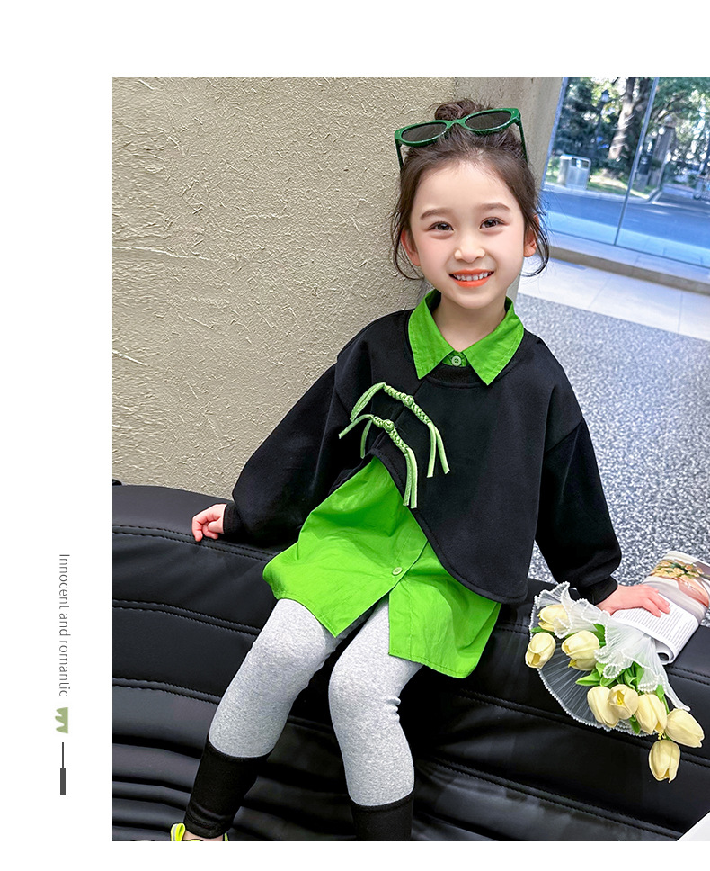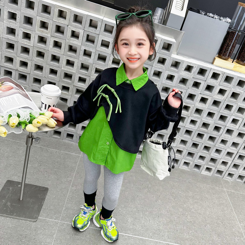 여자 패션 가짜 투피스 셔츠 세트 한국 봄 옷 어린이 옷 아기 봄과 가을 레깅스 투피스 세트