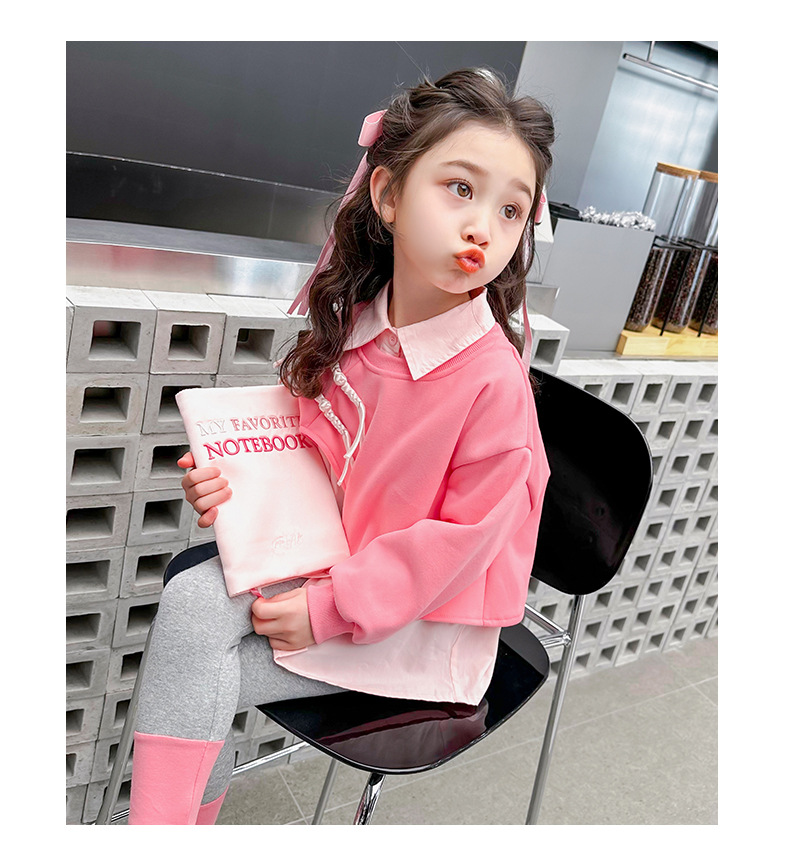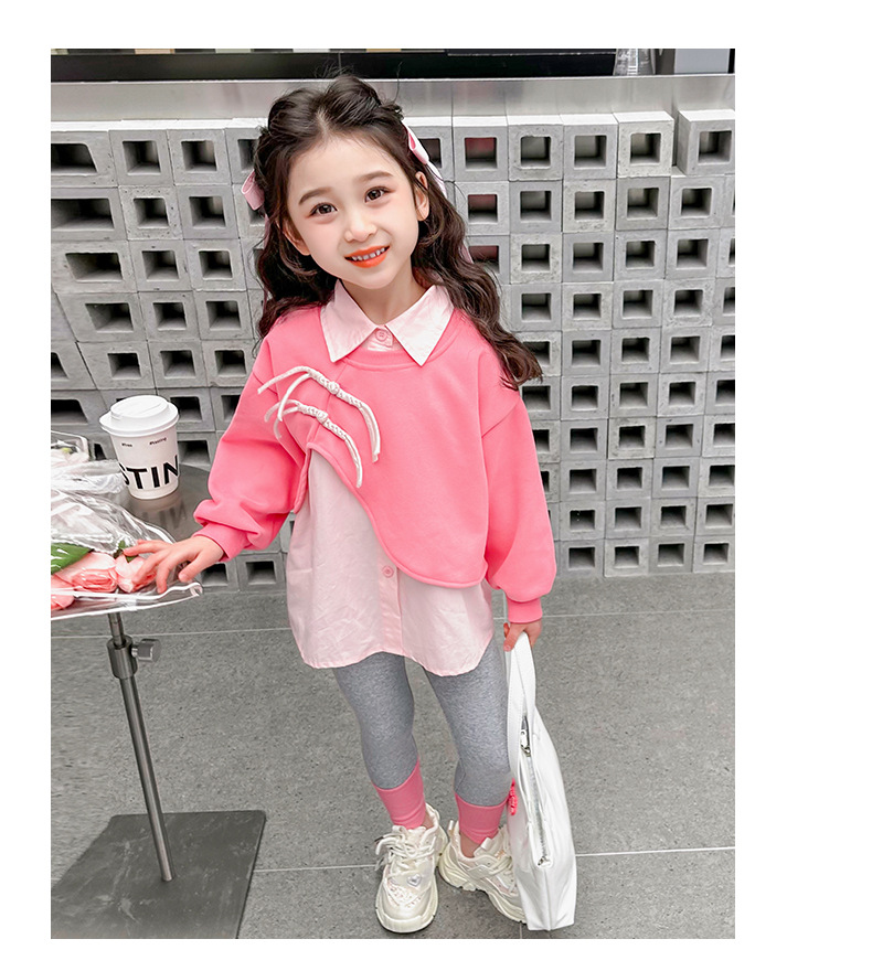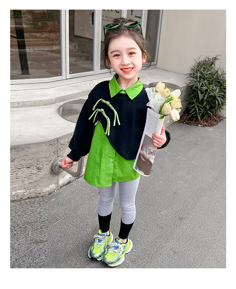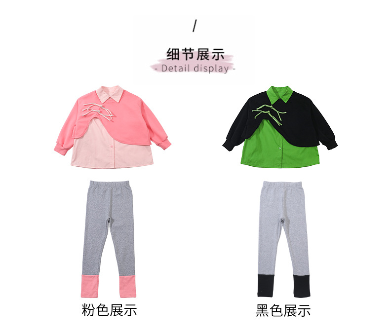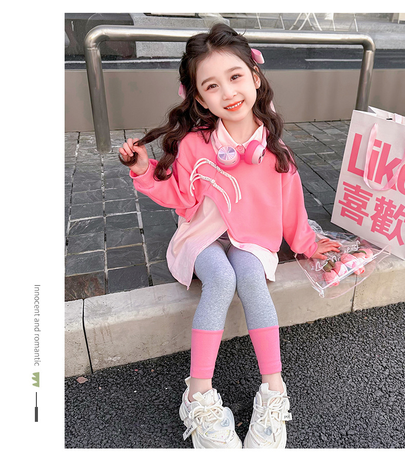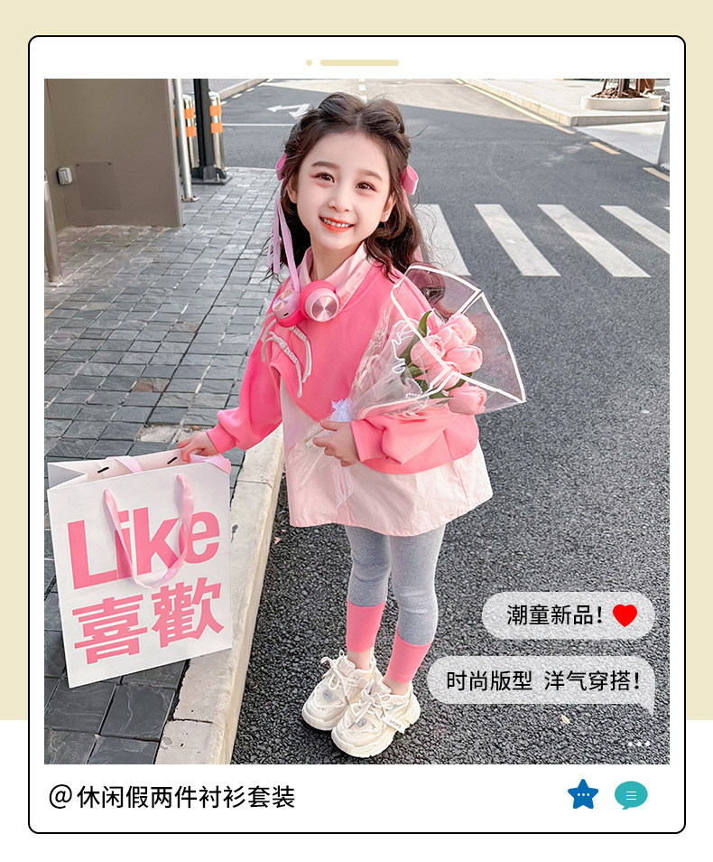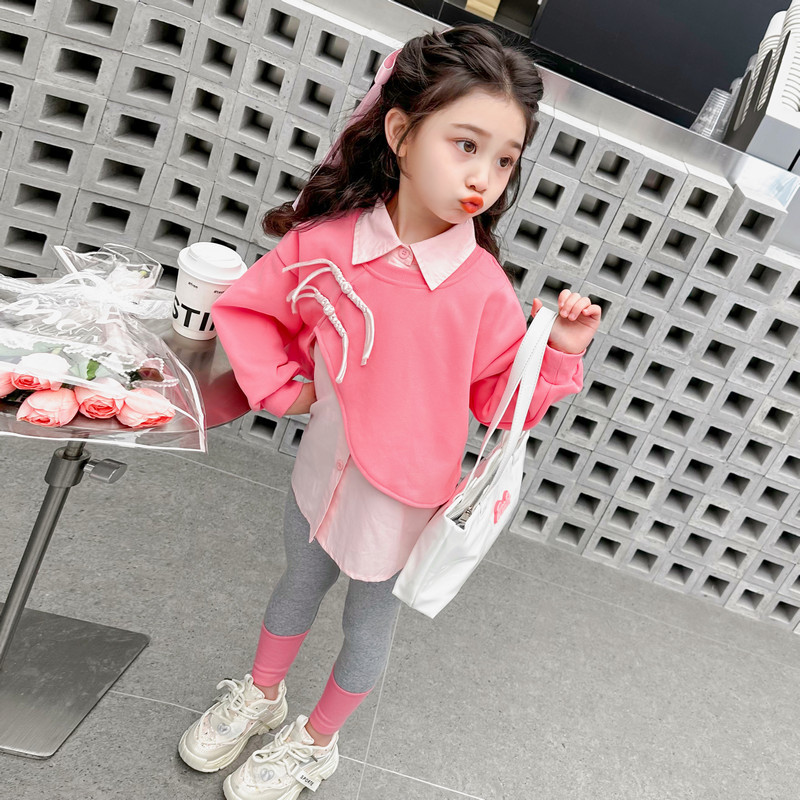 여자 패션 가짜 투피스 셔츠 세트 한국 봄 옷 어린이 옷 아기 봄과 가을 레깅스 투피스 세트스토어 가기