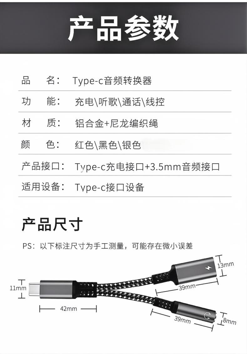 꼰 TYPE-C 오디오 케이블 PD 빠른 충전 60Wtype-c-3.5 어댑터 헤드셋 음악 충전 2 in 1스토어 가기