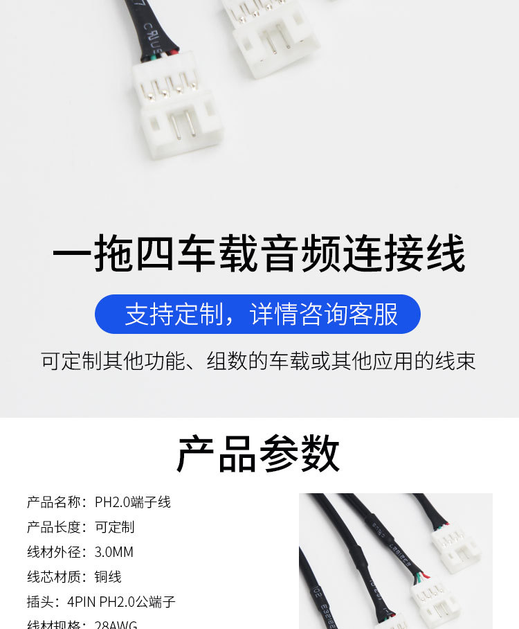 공장 맞춤형 오디오 케이블 3.5 4 P BMW 헤드 터미널 PH2.0 기계 장비 자동차 베어 구리 와이어 소스 제품스토어 가기