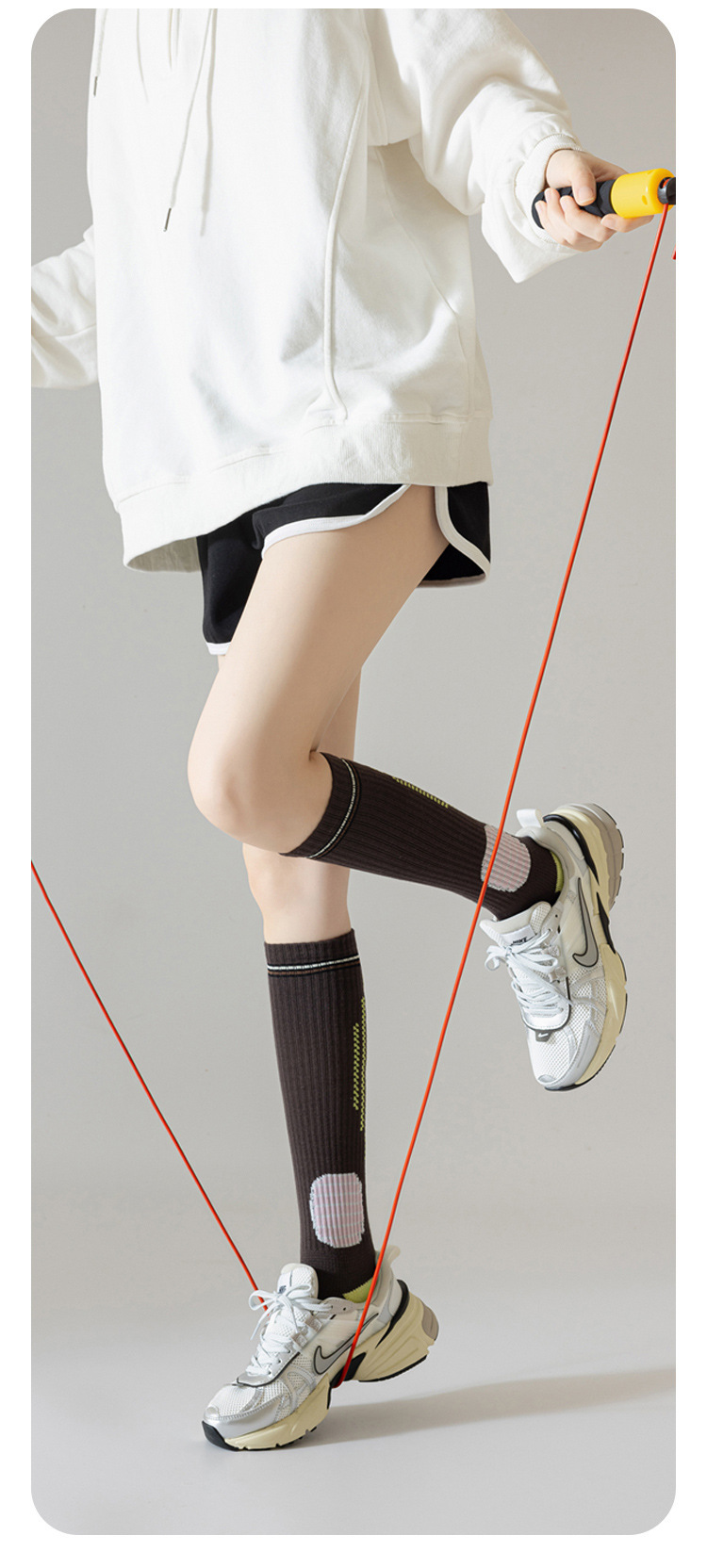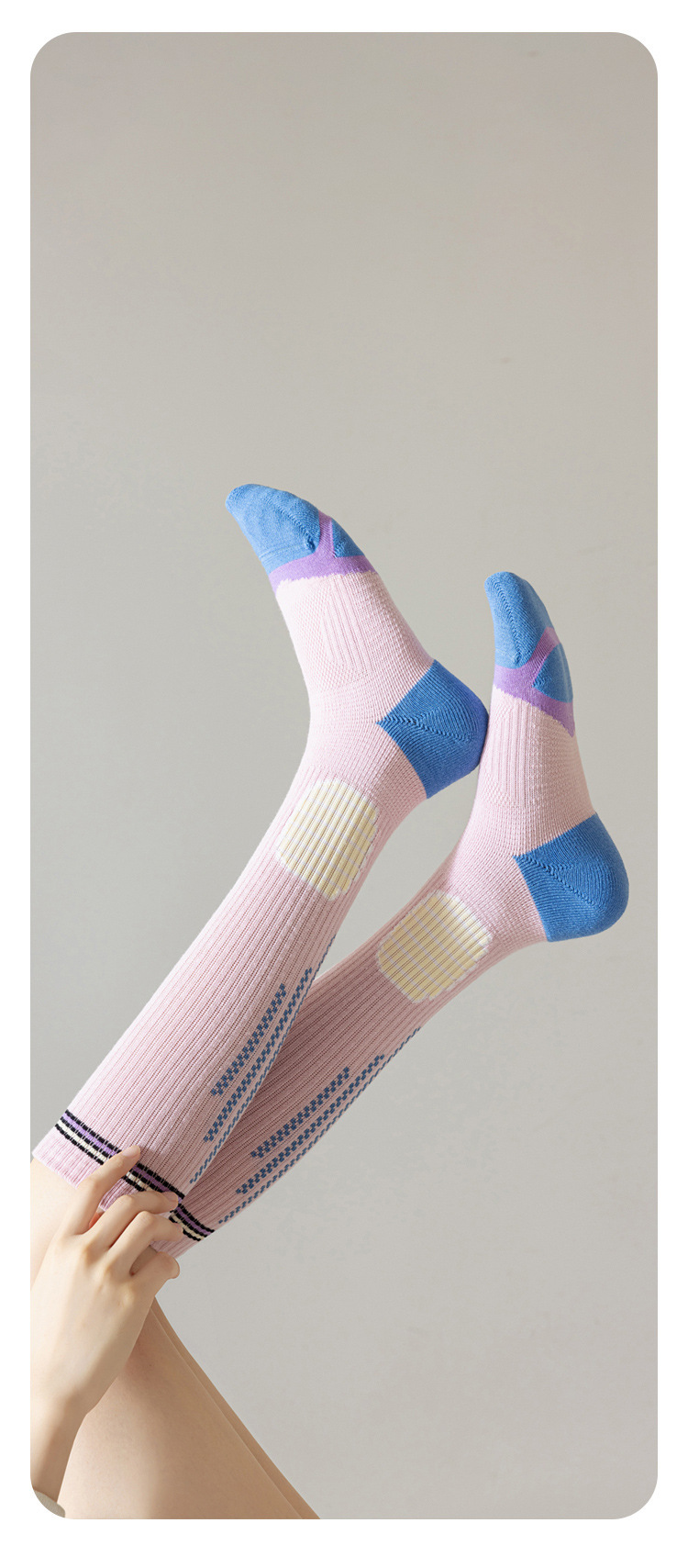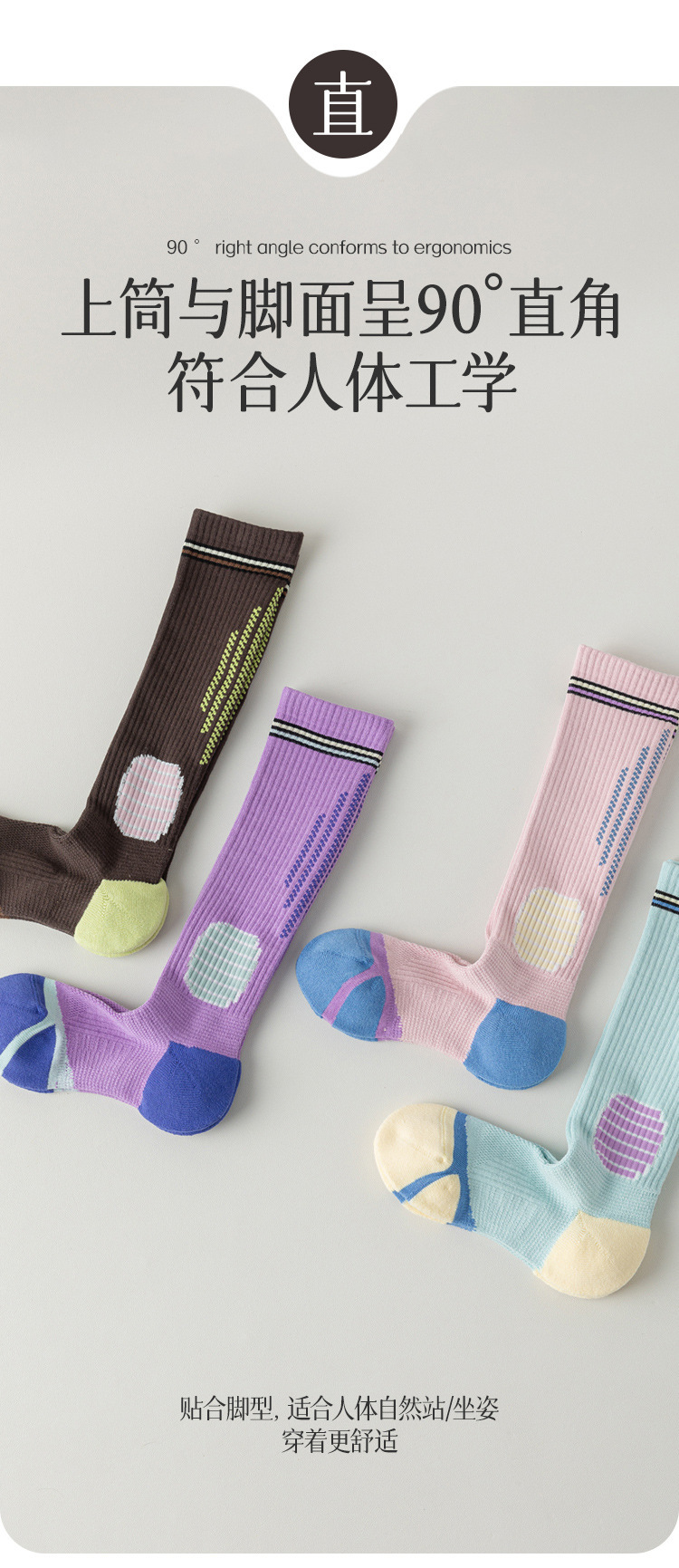 新款专业运动袜女棉压力设计脚面网眼女士中筒小腿袜健身跑步袜子