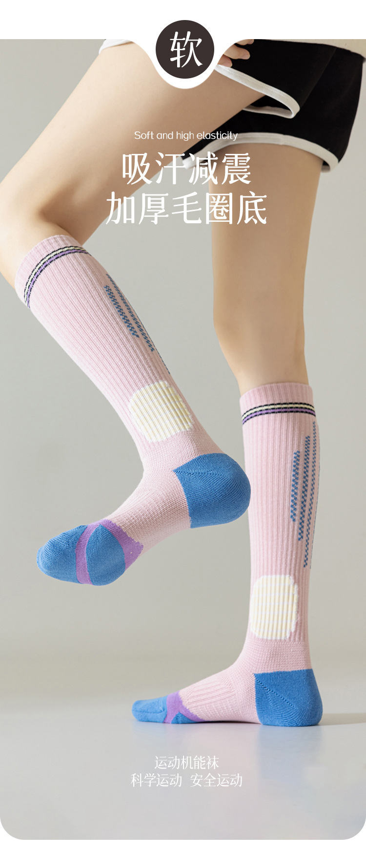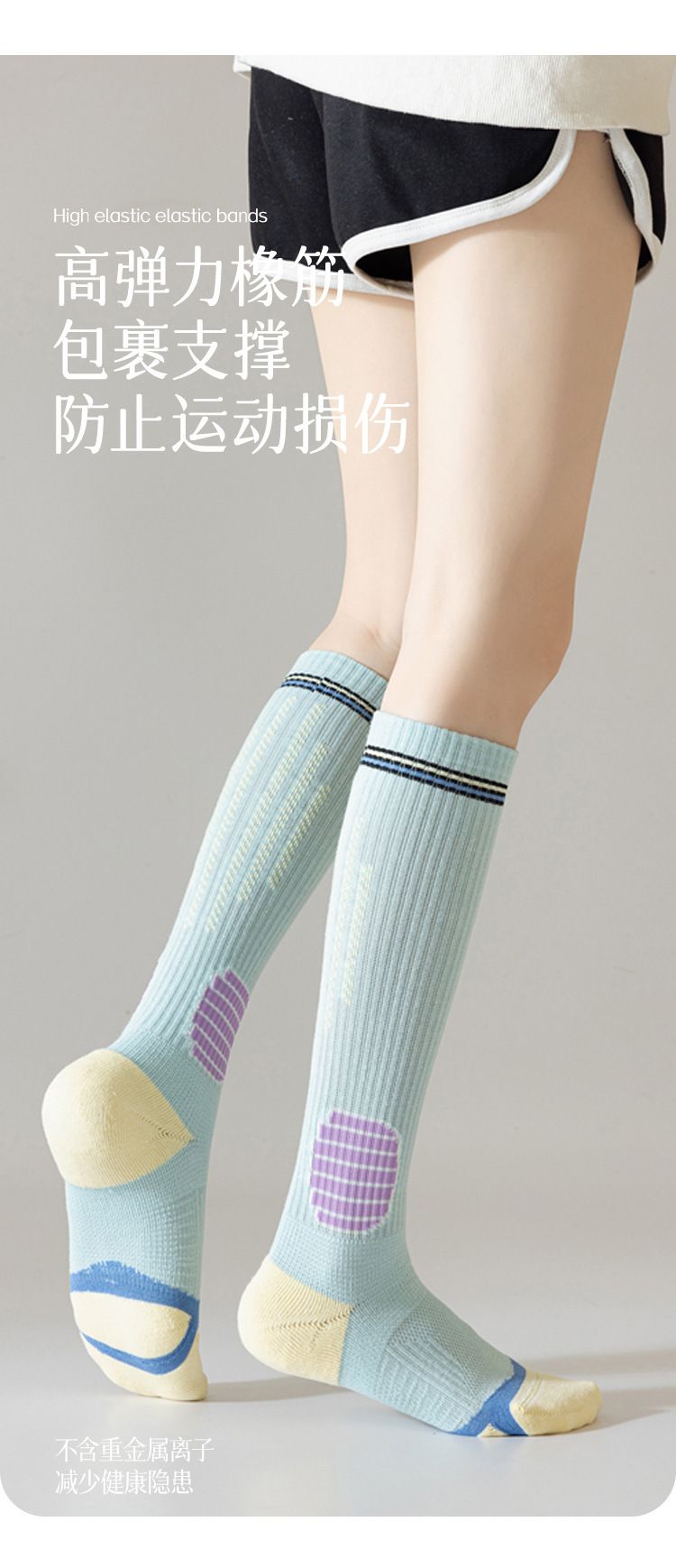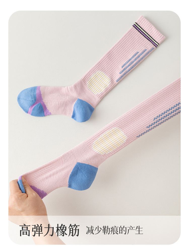 新款专业运动袜女棉压力设计脚面网眼女士中筒小腿袜健身跑步袜子