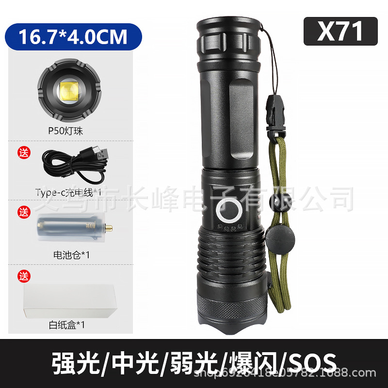 • X71P50 손전등 + USB 케이블 + 18650 배터리-2500