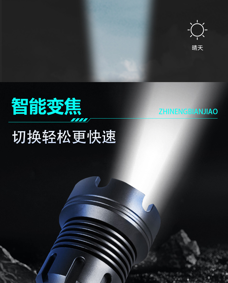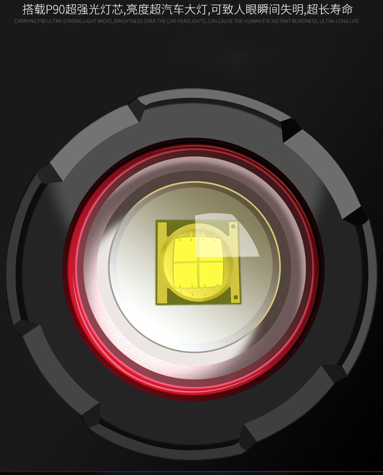 국경 간 P90 손전등 알루미늄 합금 텔레스코픽 줌 충전식 손전등 야외 장거리 조명 야간 낚시 조명