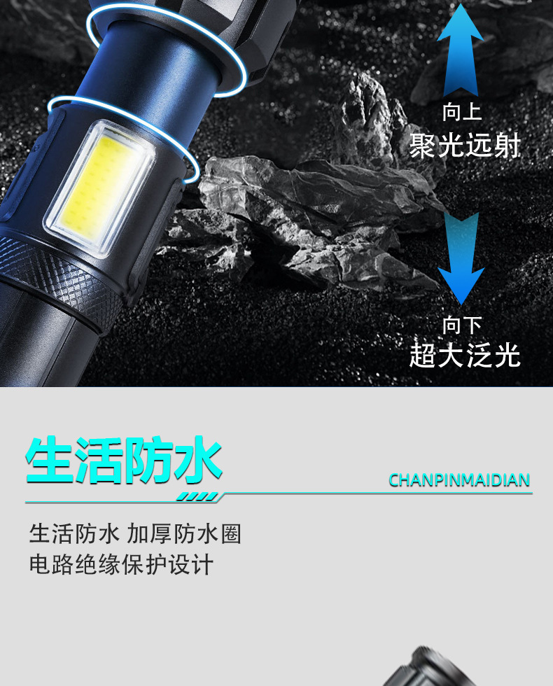 • X71P50 손전등 + USB 케이블 + 18650 배터리-800 mA