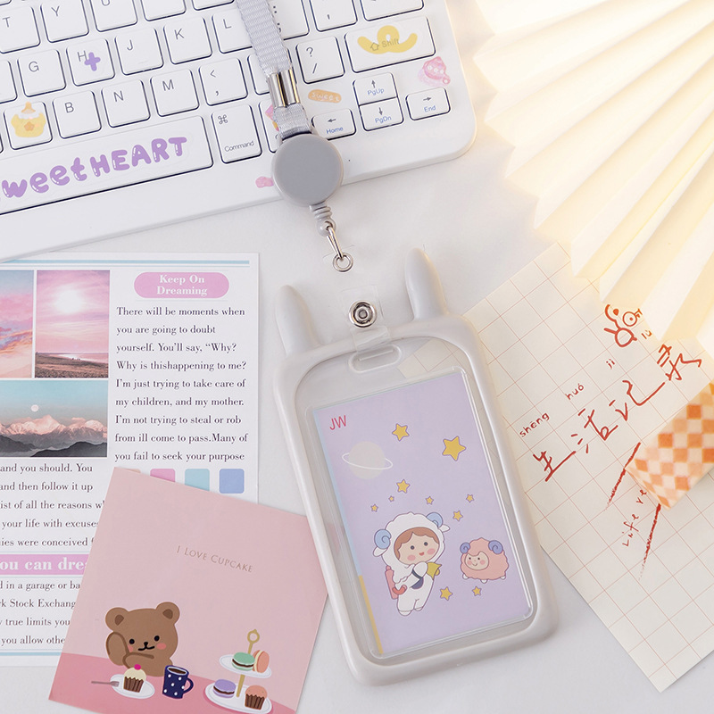 귀여운 만화 토끼 귀 어린이 범용 카드 홀더 소녀의 심장 개폐식 끈 학교 카드 식사 카드 ID 카드 홀더스토어 가기