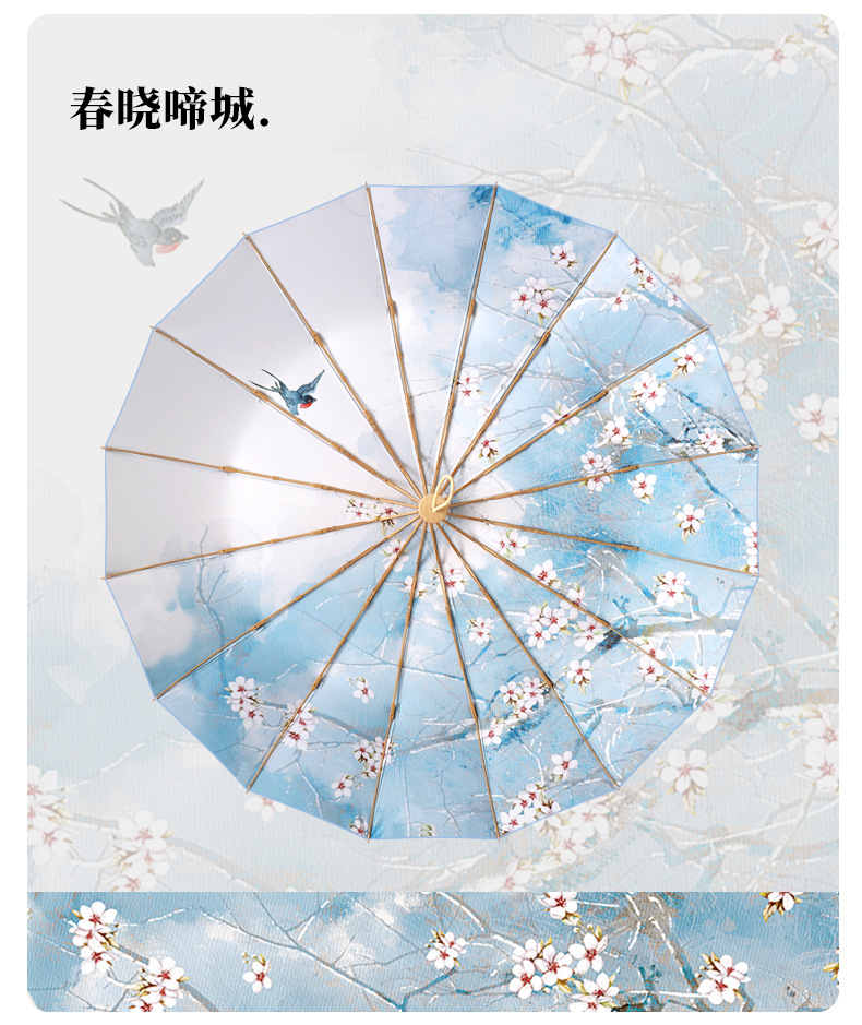 새로운 16 뼈 3 배 핸드 컬러 접착제 창조적 인 패션 선 스크린 차양 우산 재고 선 스크린 여성 태양 우산스토어 가기
