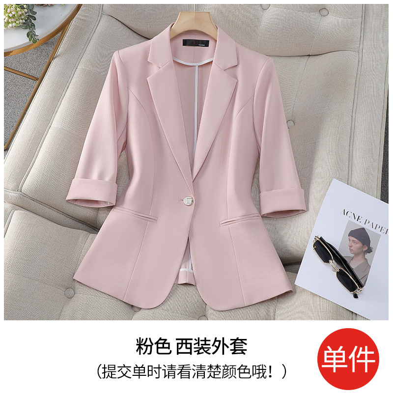 여성을위한 하늘색 작은 정장 재킷 여름 2025 새로운 스타일 신선한 캐주얼 7부 소매 얇은 정장 탑스토어 가기