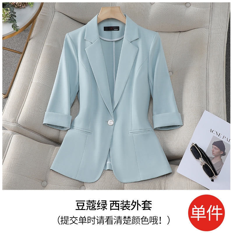 여성을위한 하늘색 작은 정장 재킷 여름 2025 새로운 스타일 신선한 캐주얼 7부 소매 얇은 정장 탑